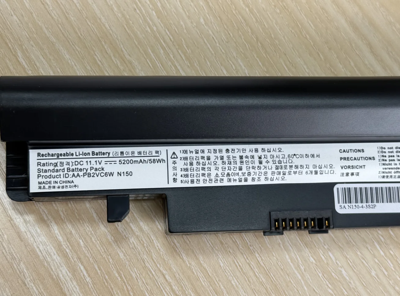 La batería es compatible con el netbook Samsung N150 Plus. Estaba parcialmente cargada, el portátil mostraba un 77%. Vi una película de dos horas para descargarla, y después de la descarga, hasta que el netbook se apagó, conecté el cargador. La batería se cargó al 100%. El tiempo dirá cuánto durará.