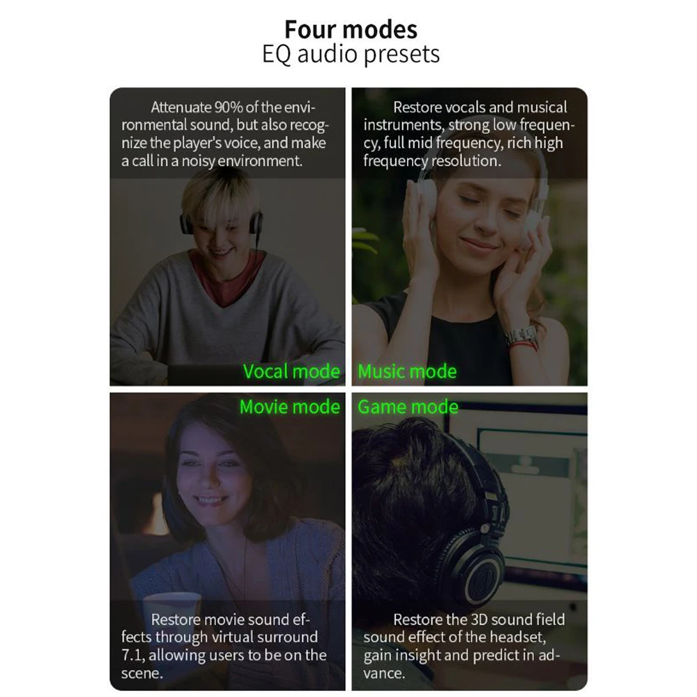 Modo DE JUEGO: restaura el efecto de sonido 3D de los auriculares, proporcionando una visión precisa del movimiento circundante y mejorando la experiencia del juego.
