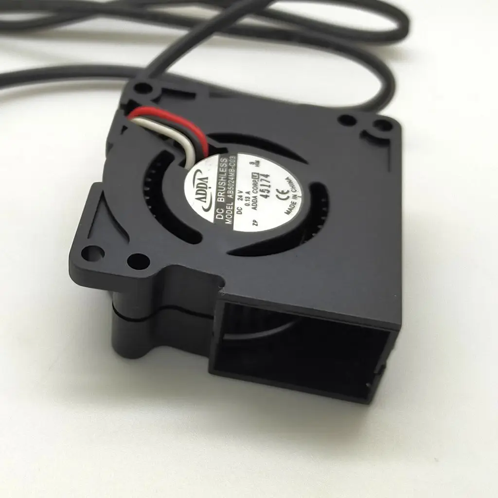 Product Description: The AB5024MB-C03 is a compact 50x50x20mm DC 24V mini blower fan designed for efficient cooling in confined spaces. Operating at 3000 RPM with a low power consumption of 0.13A, this turbine centrifugal fan provides reliable airflow for heat dissipation. Its durable dual ball bearing construction ensures a long lifespan and stable performance. Equipped with a 3-wire small 3-pin connector, it is easy to install in various electronic cooling applications. Key Features: Efficient Cooling: 3000 RPM speed for consistent airflow Reliable Durability: Dual ball bearing for extended lifespan Low Power Consumption: 24V, 0.13A for energy-efficient operation Easy Installation: 3-wire 50cm cable with a small 3-pin connector Compact Design: Ideal for small electronic cooling applications Application Scenarios: 3D printers and laser engraving machines Electronics and circuit board cooling Network and telecom equipment ventilation Small power supply and inverter cooling Embedded systems and robotics airflow management