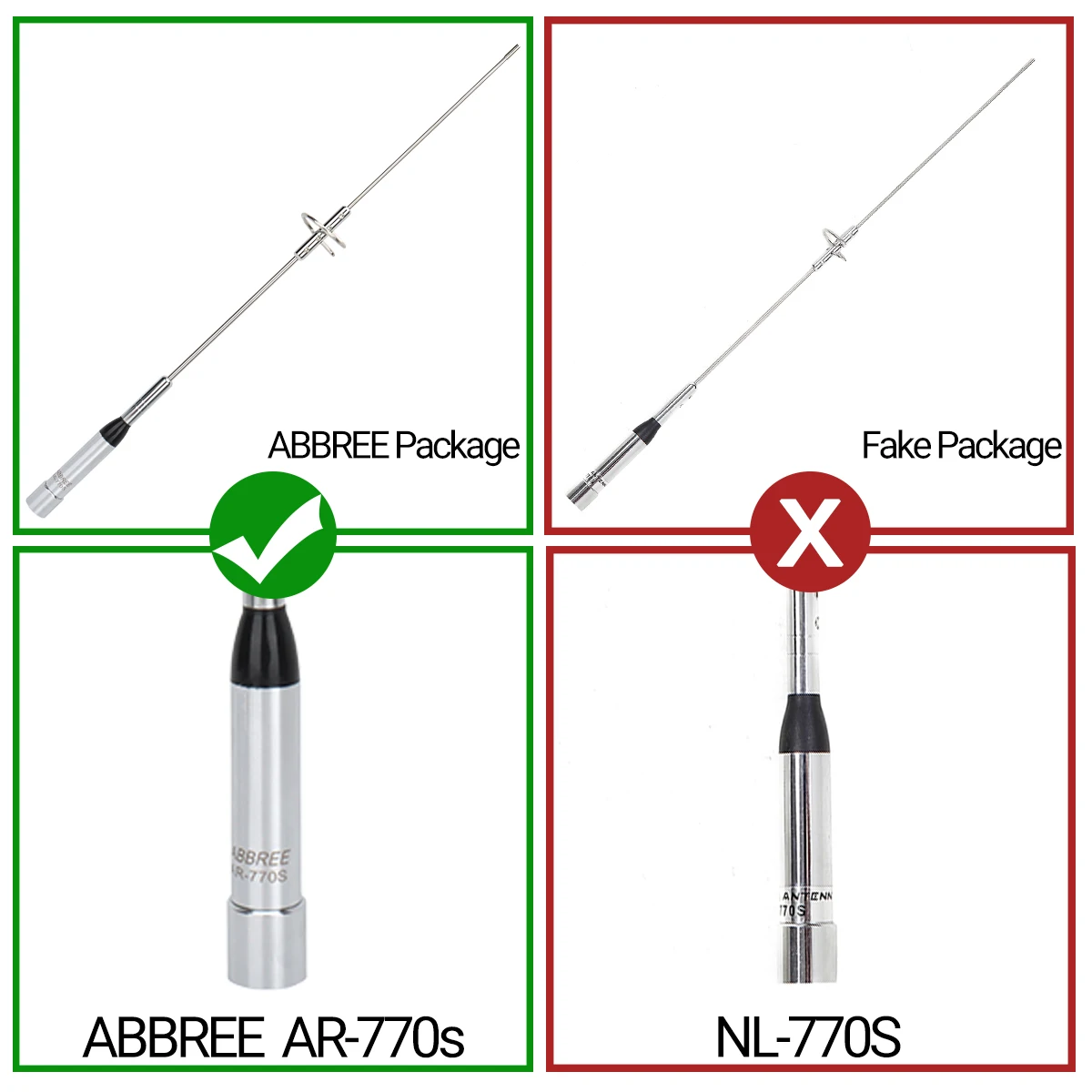 ABBREE AR-770S Antena de doble banda VHF UHF 144/430MHz Alta ganancia para TYT Baojie BJ-218 AR-2520 Amateur Radio de coche Radio móvil
