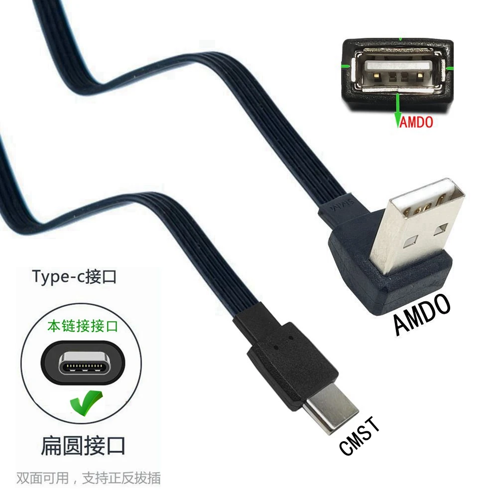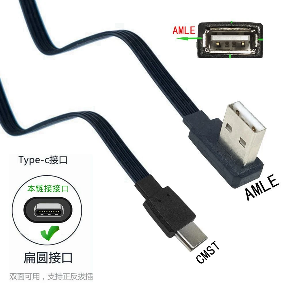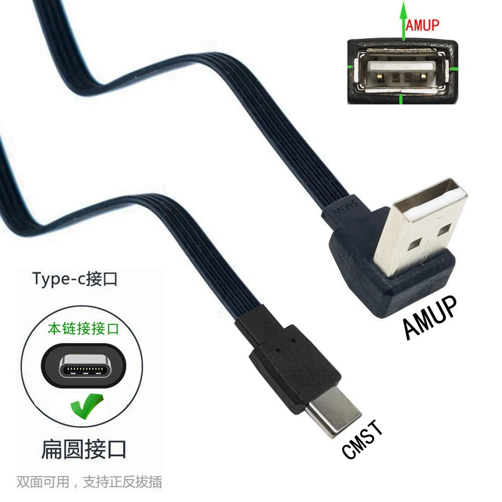 USB-C Typ C Stecker enlaces rechts nach oben abgewinkelt 90 ° zu USB 2,0 Stecker Datenkabel USB tipo C Flach kabel 0,1 m/0,2 m/0,5 m