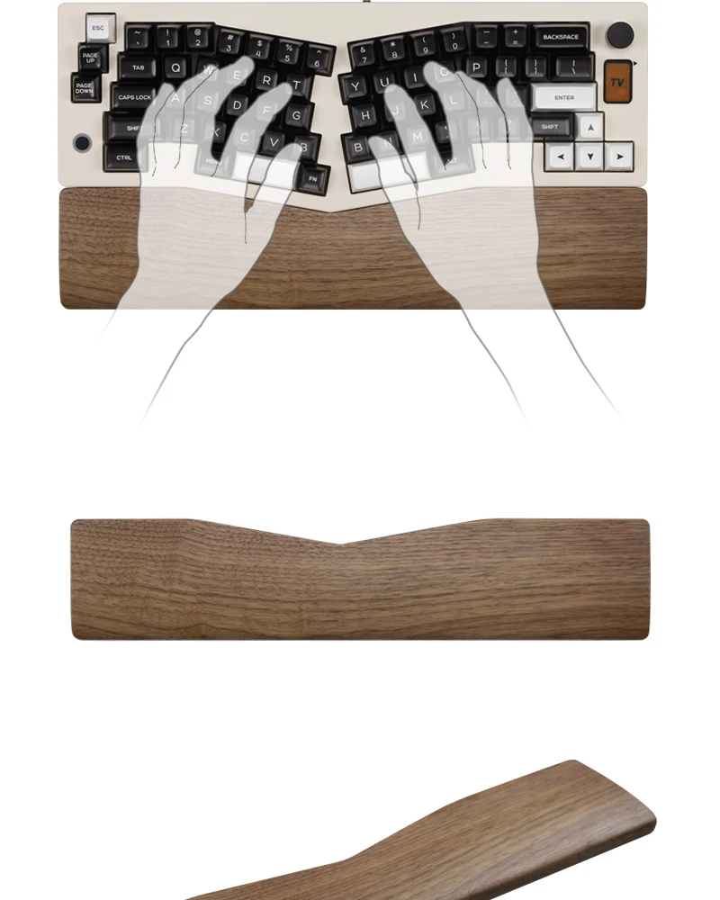 ABM066 teclado Palm Pad personalizado madera de nogal cuerpo dividido resina reposamuñecas teclado comodidad Typewrit antideslizante ergonómico muñequera