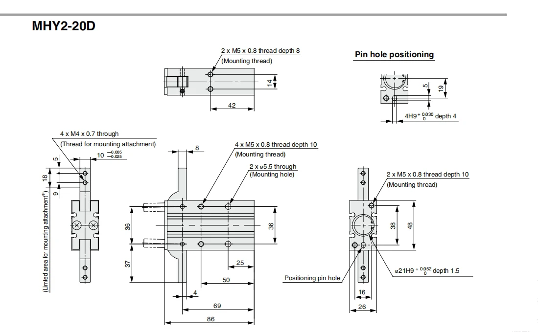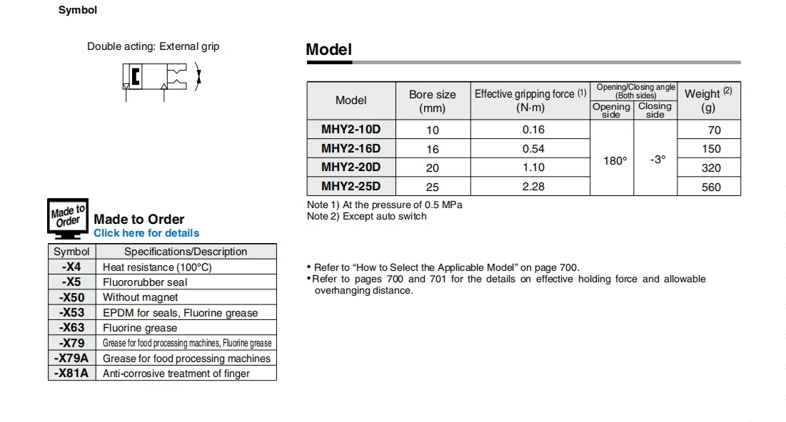 Abrazadera de aluminio Angular tipo SMC de 180 grados, cilindro MHY2, 10D, 16D, 20D, 25D, pinza neumática de doble acción, diámetro de 10-25mm