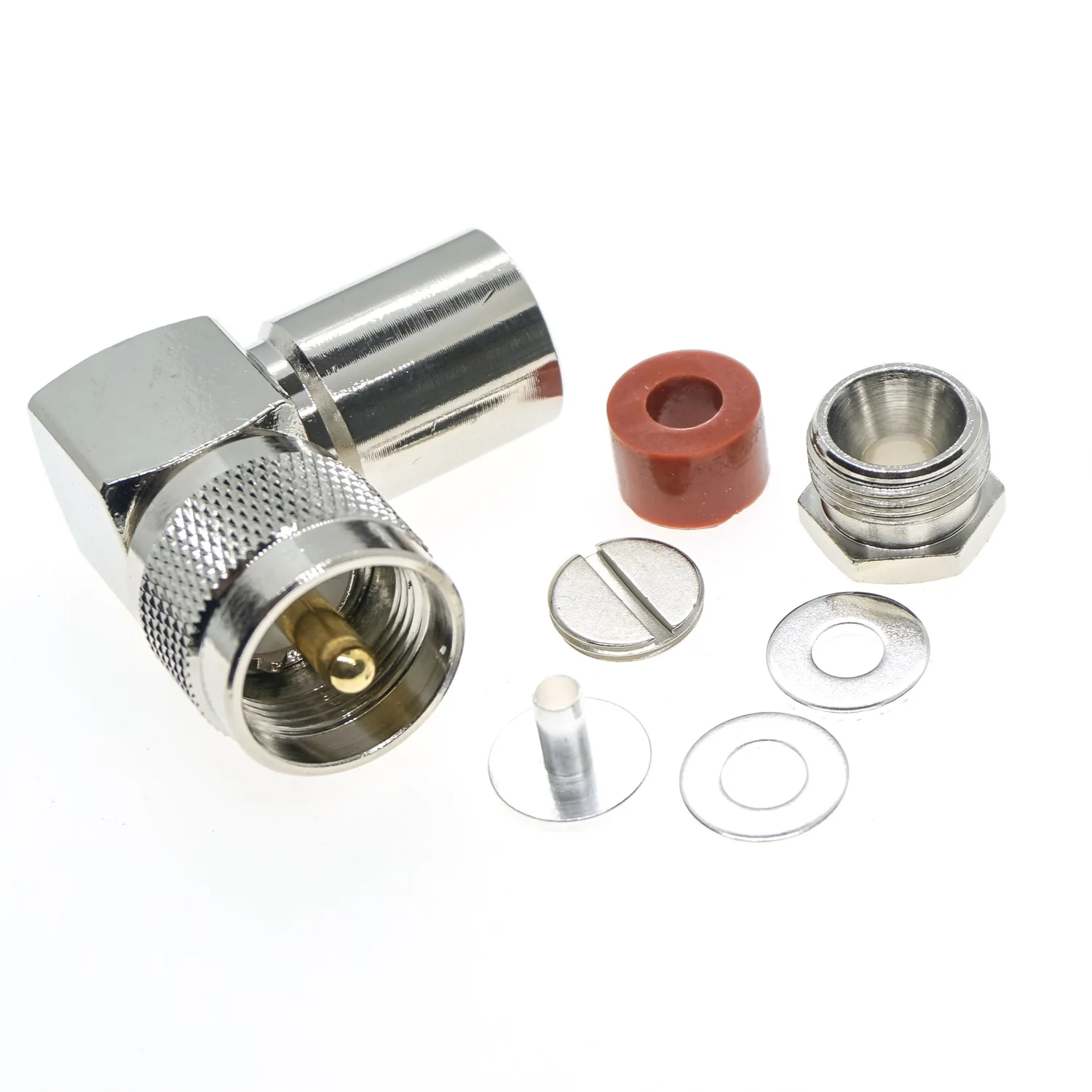 Comprar Abrazadera de conector RF de 90 grados, ángulo recto, enchufe de PL-259 macho UHF para LMR195 RG58 RG400 RG142