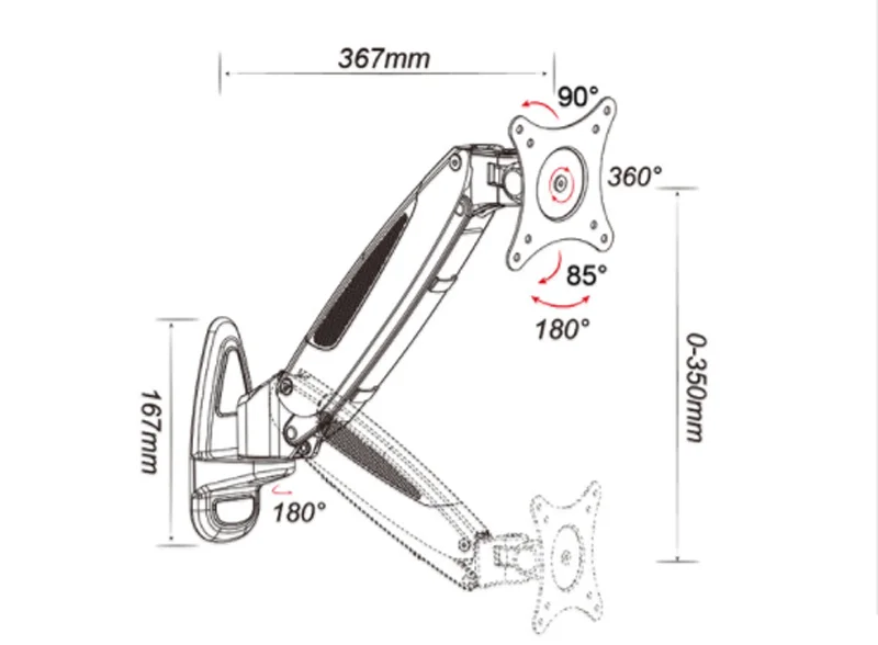 Comprar Abrazadera giratoria de aluminio con resorte de gas para teclado, montaje de pared con ratón largo, 27 pulgadas, 0-8kg, 360 grados, DL-GM111WKY