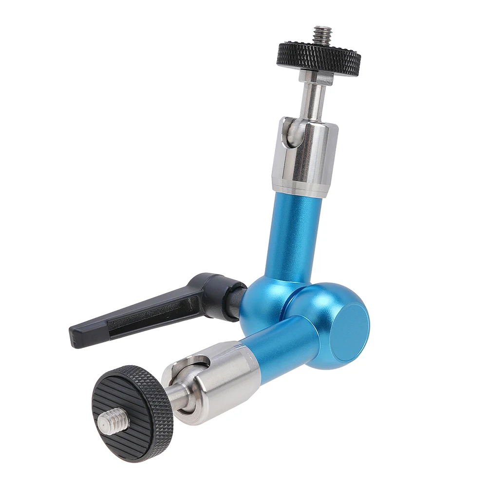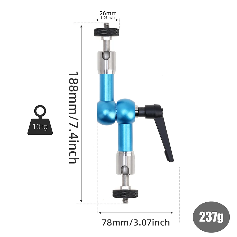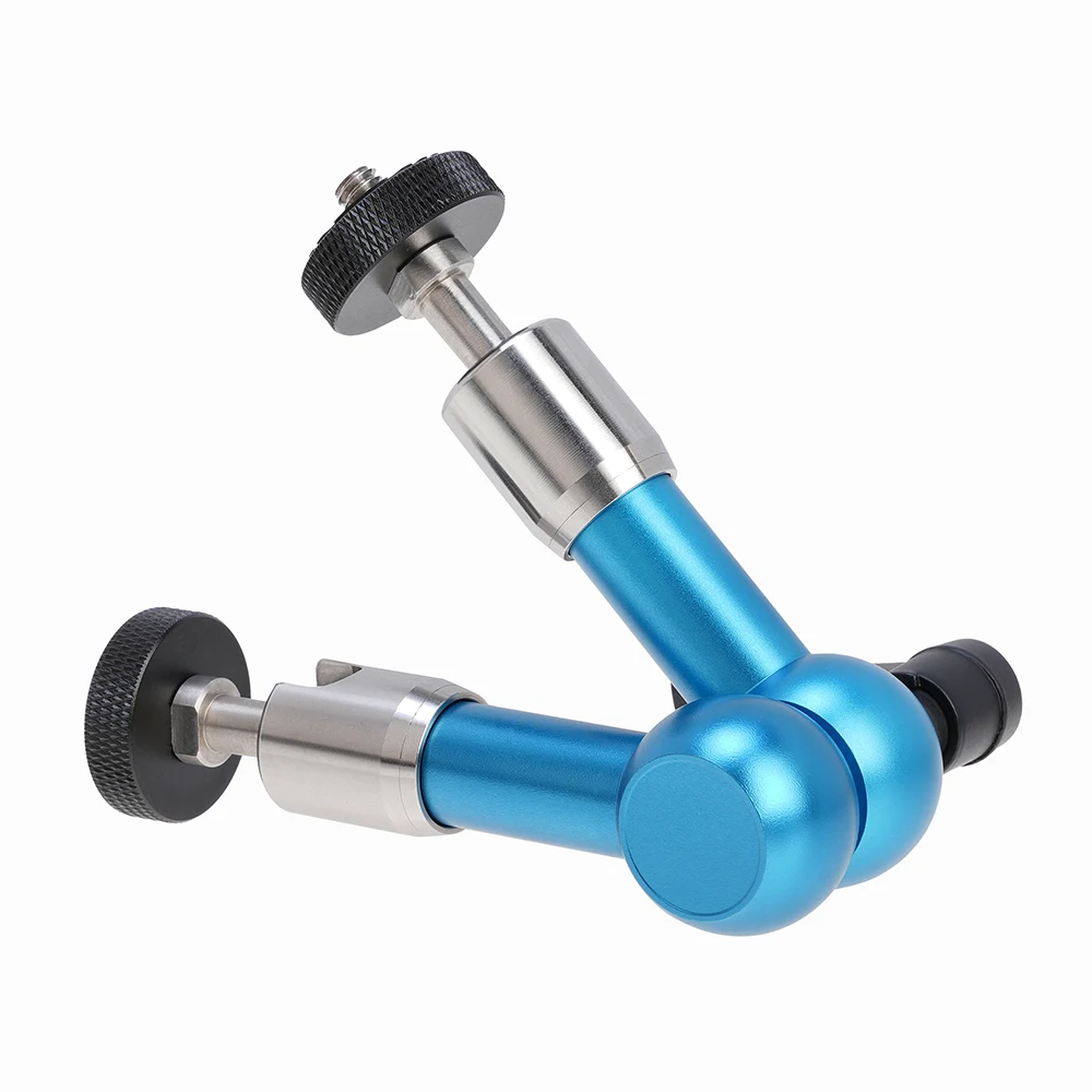 ARM MAGIC: un lado tiene un tornillo de 1/4" que se conecta al monitor, luz LED u otros accesorios.Otro lado es un soporte cuadrado de zapata que se puede montar fácilmente en su cámara DSLR.Y este soporte de zapata es extraíble para convertirse en otro tornillo de 1/4", por lo que ambos extremos son un tornillo de 1/4" que puede conectar a diferentes equipos.