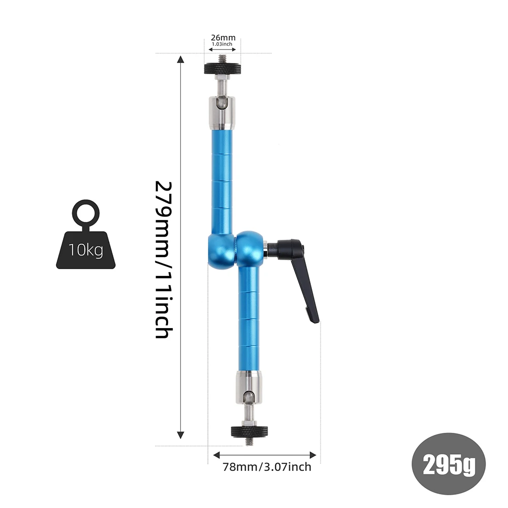 FÁCIL DE CONTROLAR: este brazo mágico con perillas de control de bloqueo para liberar o aumentar la tensión que puede dar movimiento en todas las posiciones.Este brazo mágico articulado con dos 360° Las rótulas suaves simplifican el montaje, colocación y ajuste de cualquier iluminación de la cámara y otros accesorios.