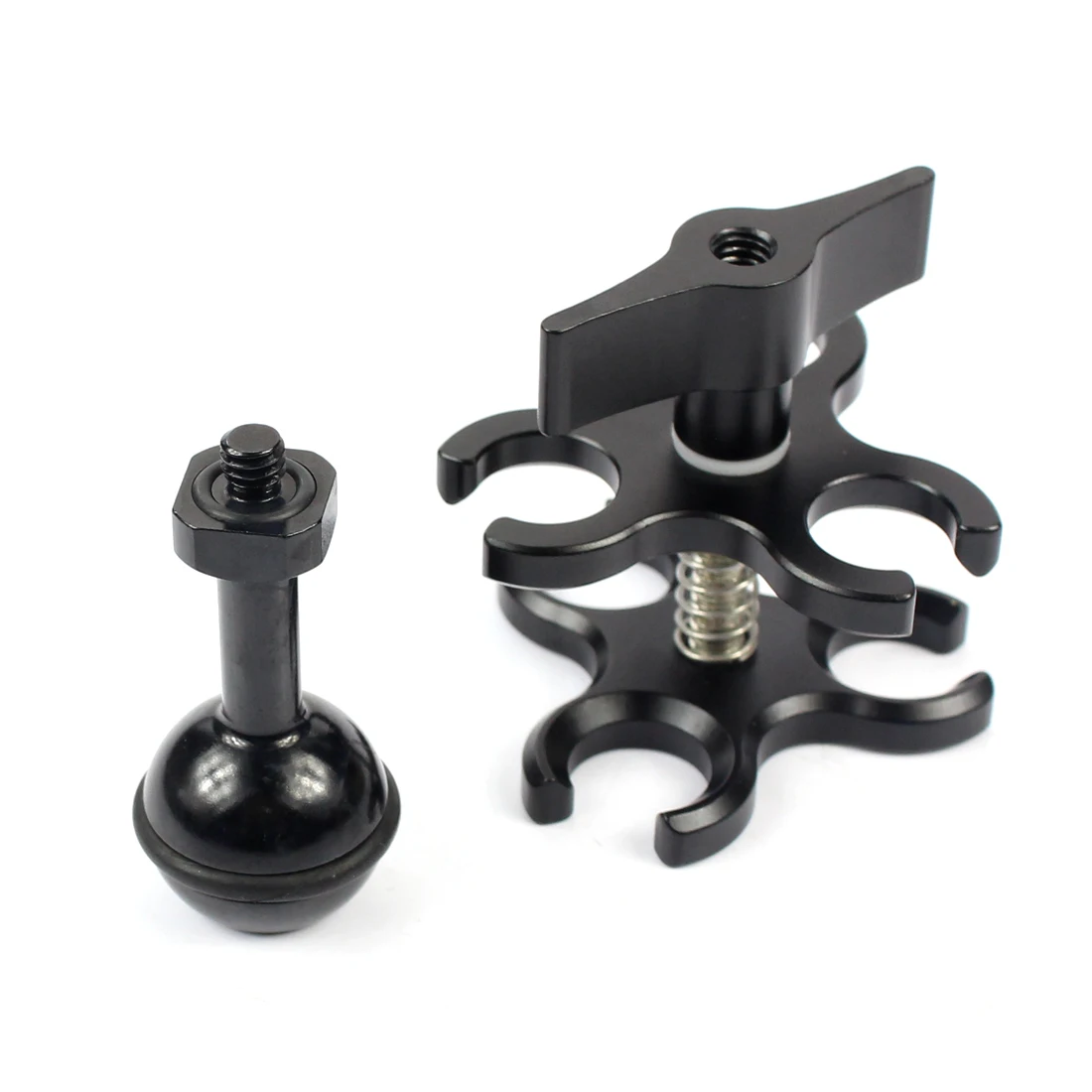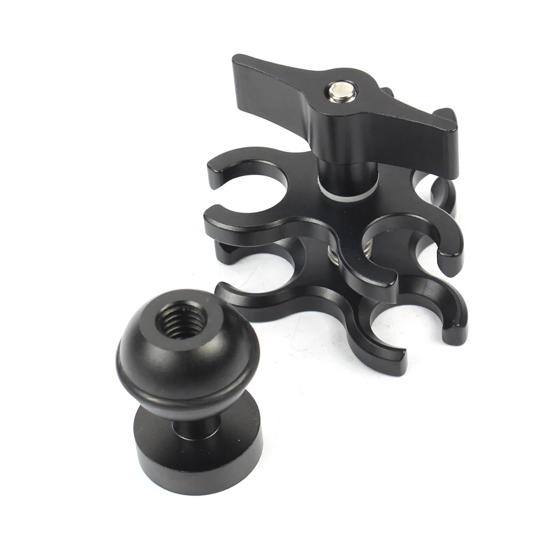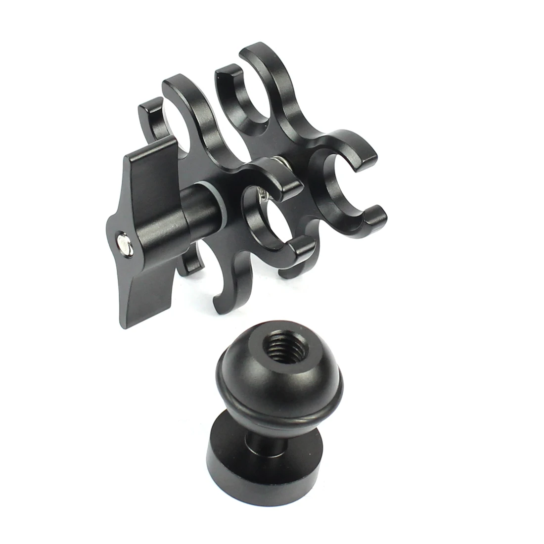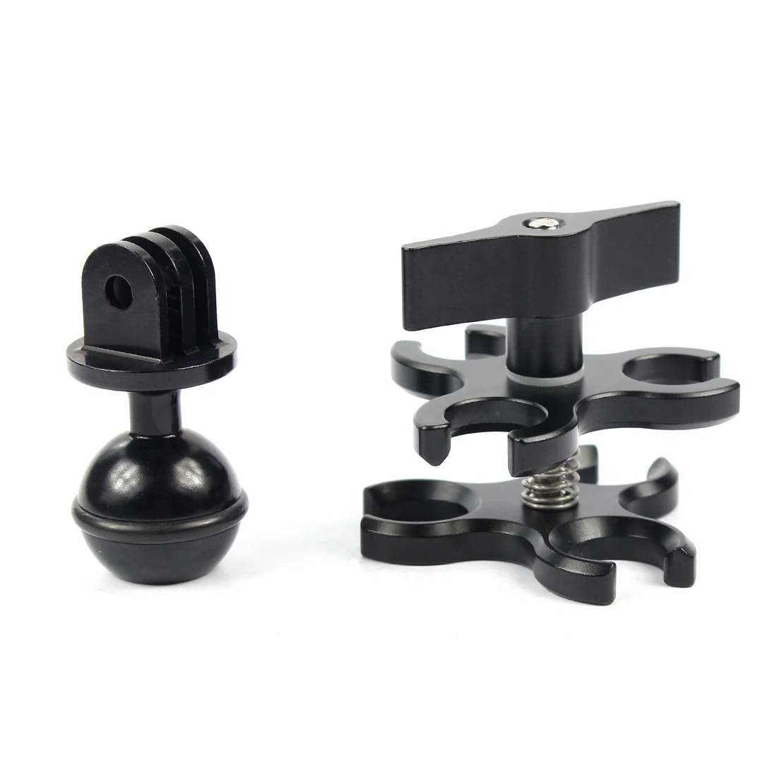 Comprar Abrazadera mejorada de 3 orificios, montaje de Clip de mariposa Triple + adaptador de cabeza de bola para luces de buceo, accesorio de brazo LED Hero 5/4/3