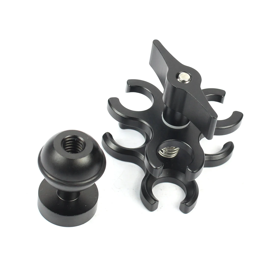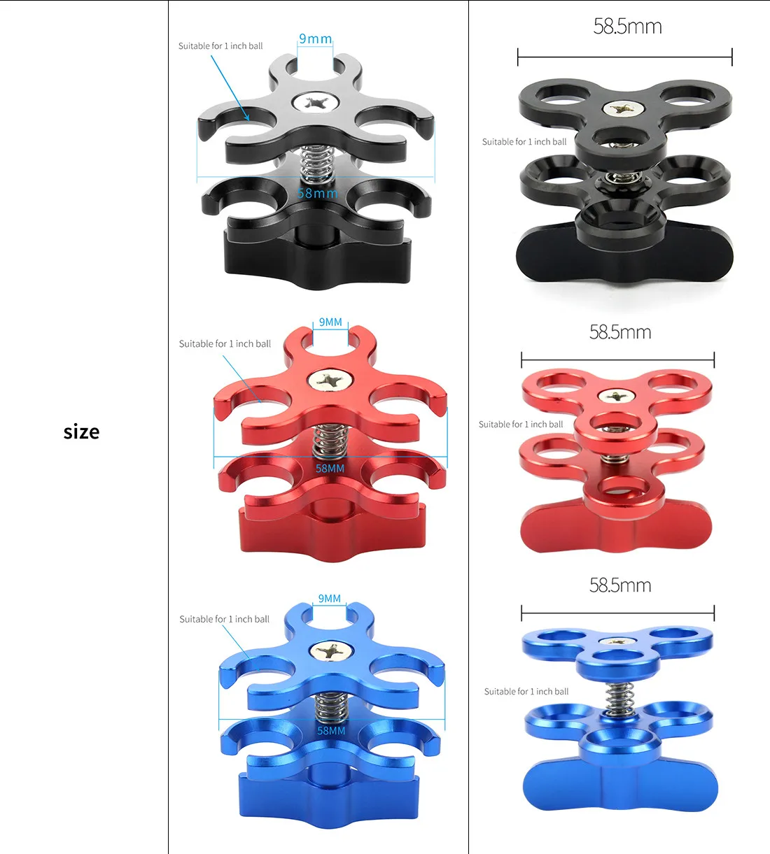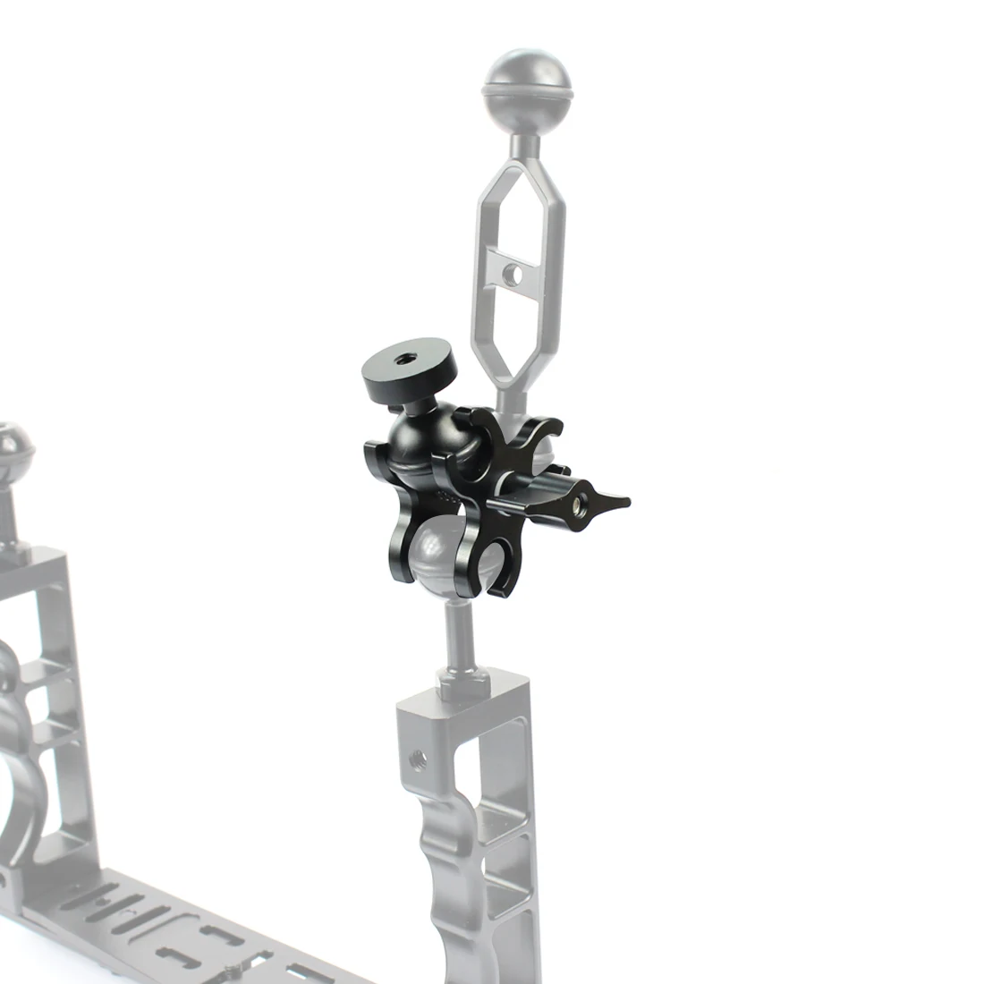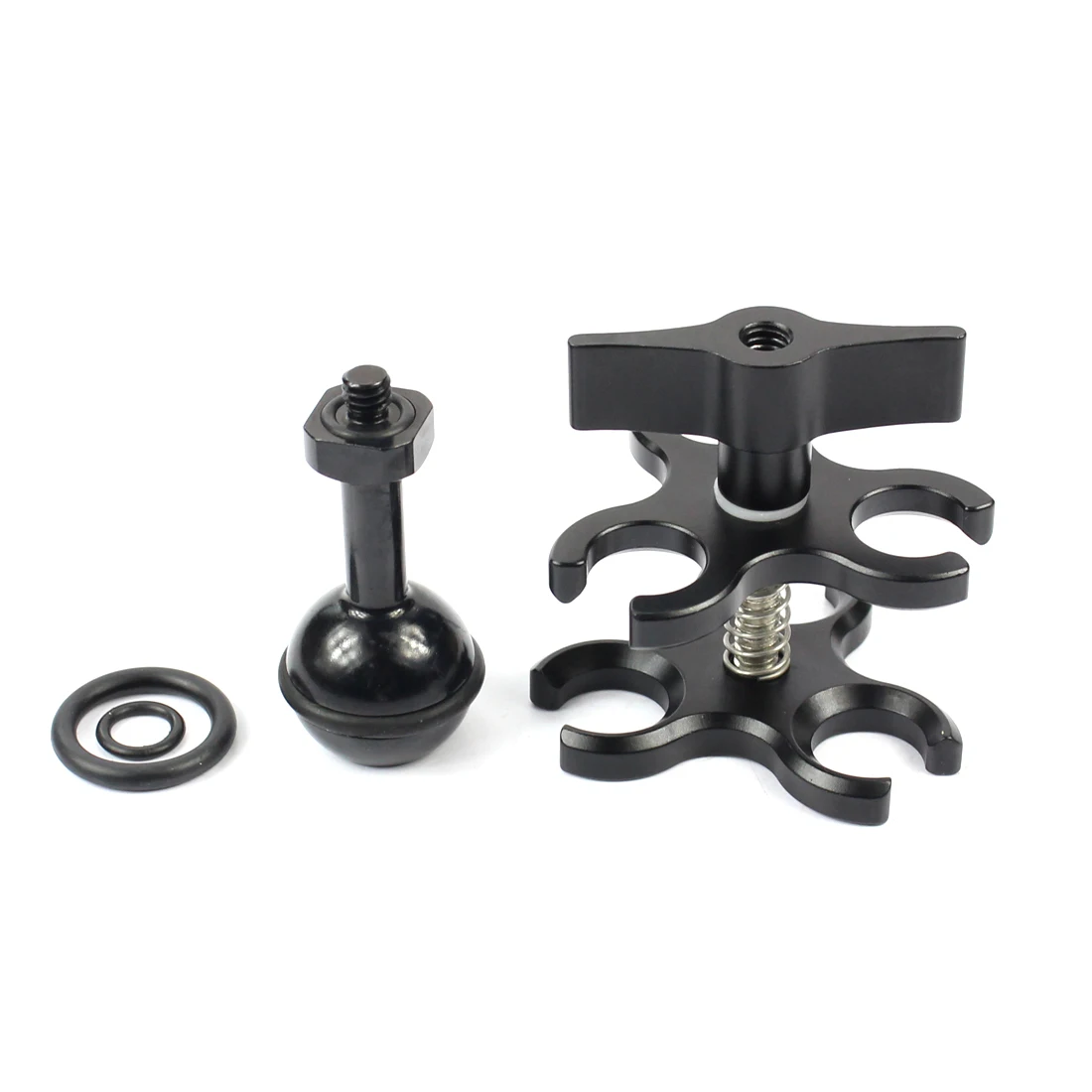 Comprar Abrazadera mejorada de 3 orificios, montaje de Clip de mariposa Triple + adaptador de cabeza de bola para luces de buceo, accesorio de brazo LED Hero 5/4/3
