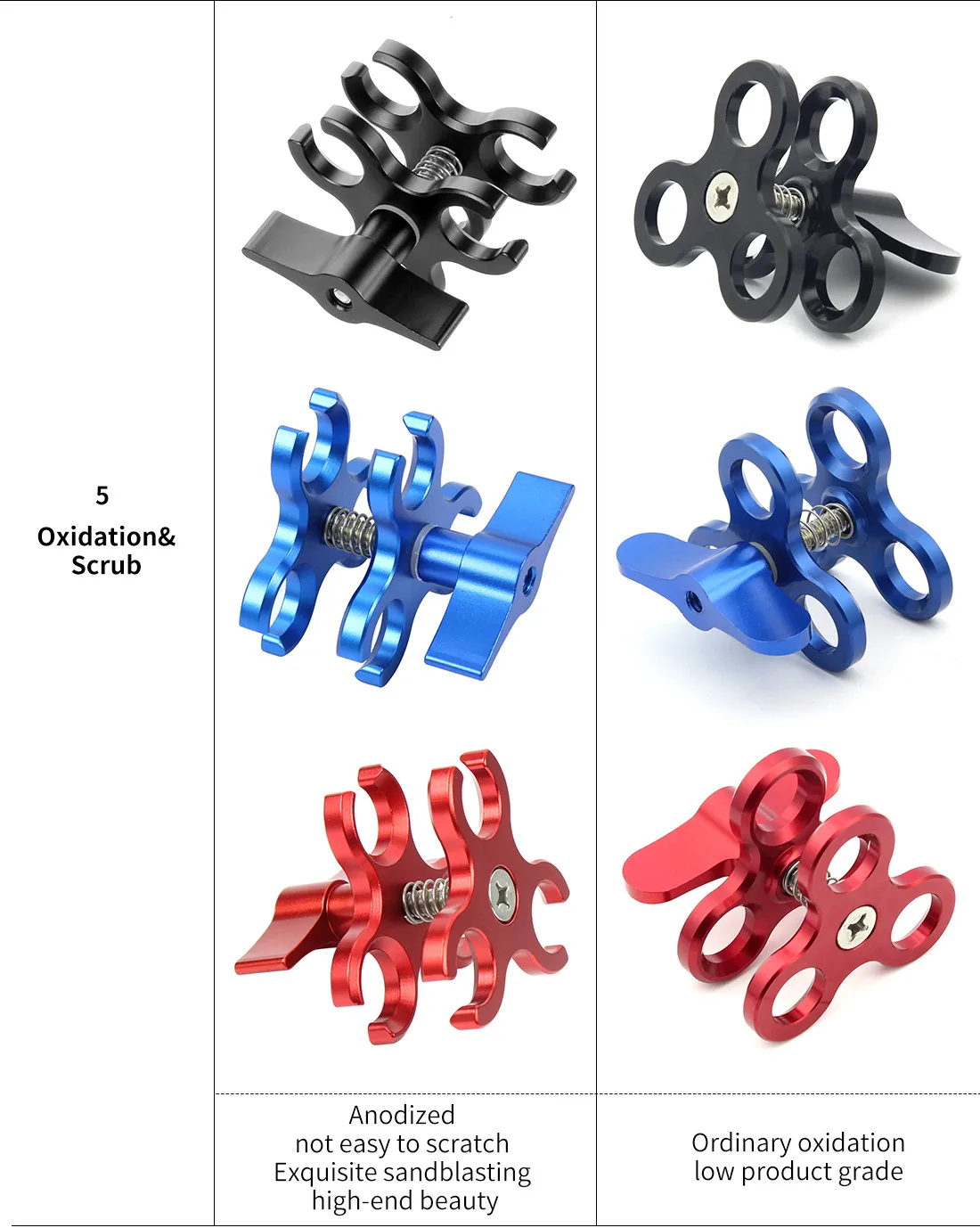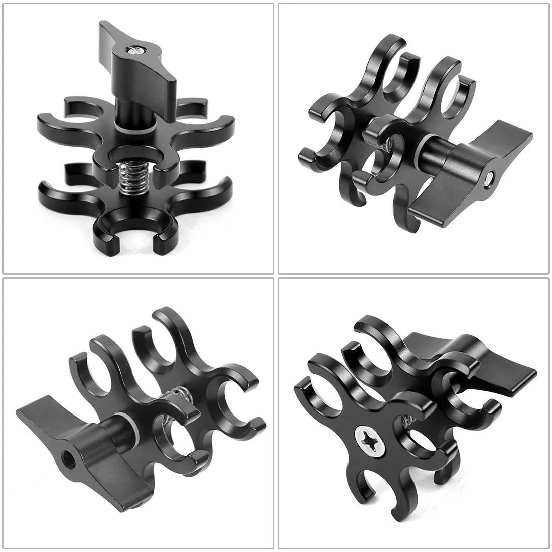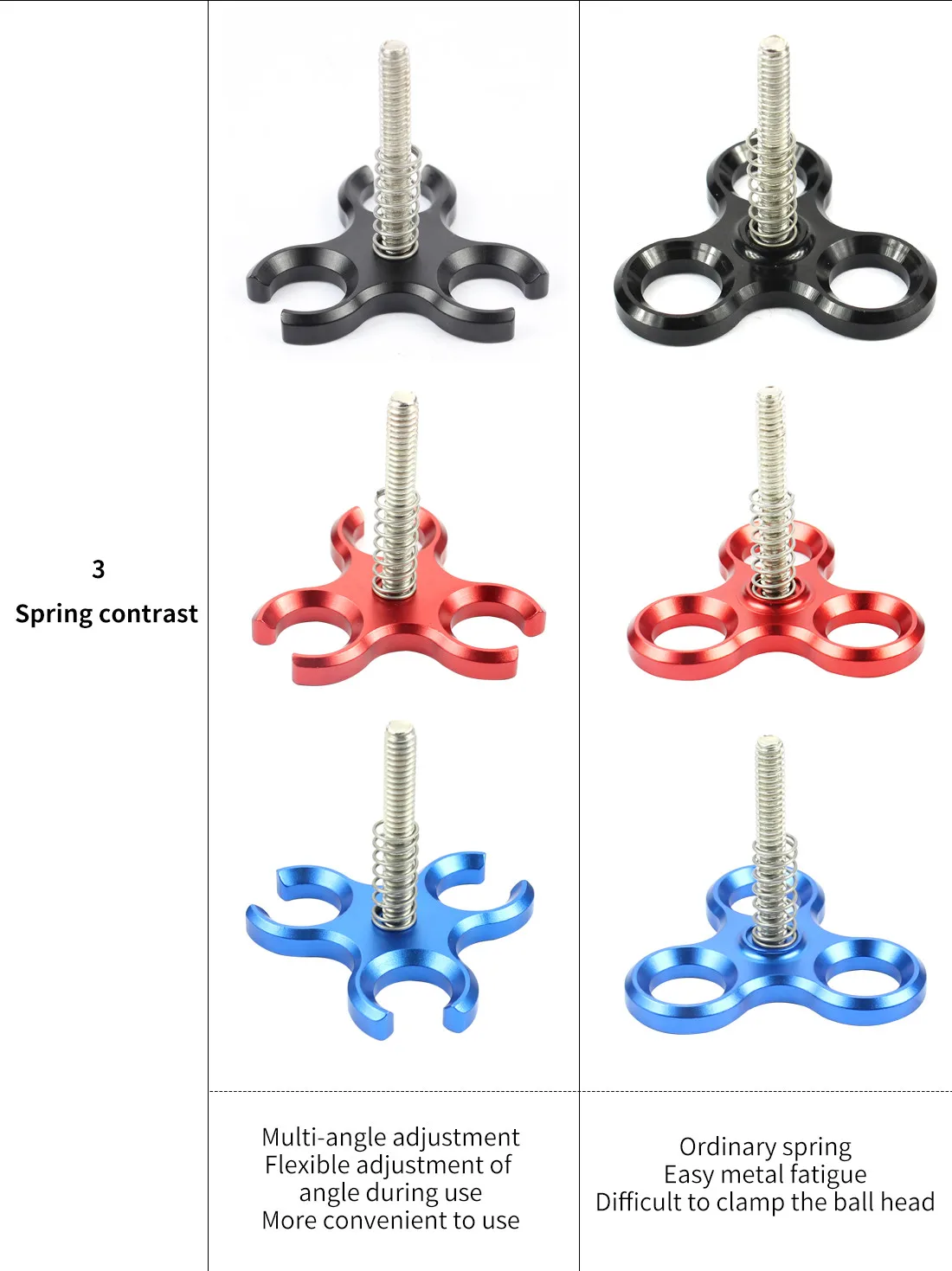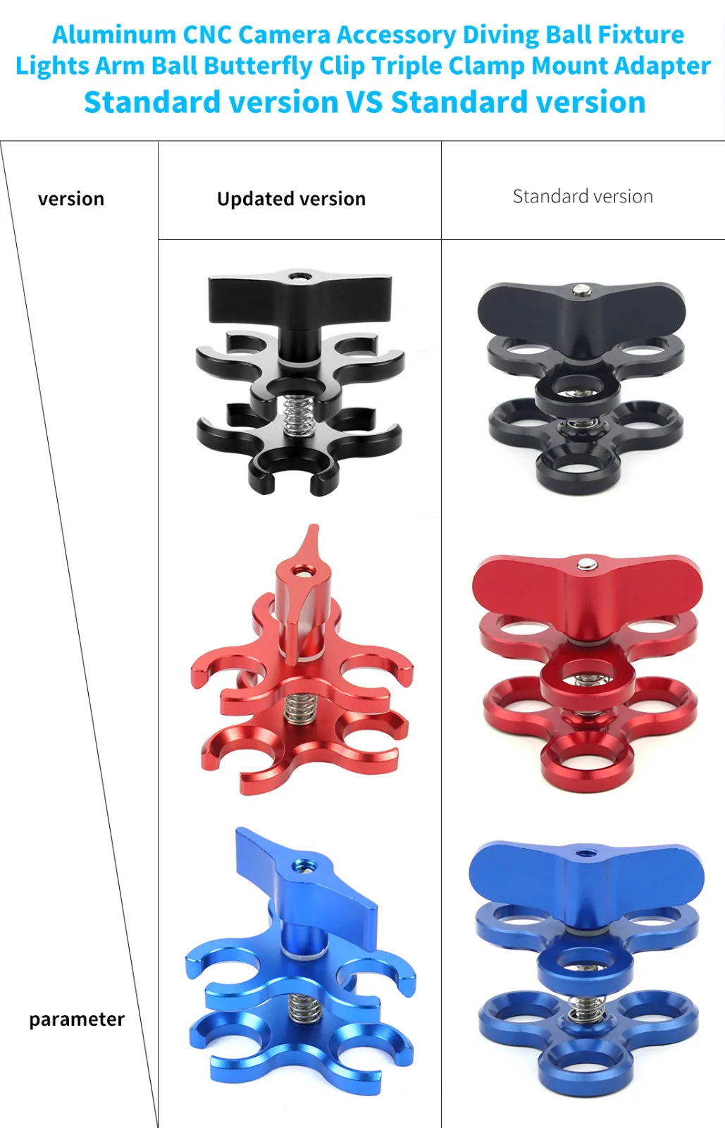 Comprar Abrazadera mejorada de 3 orificios, montaje de Clip de mariposa Triple + adaptador de cabeza de bola para luces de buceo, accesorio de brazo LED Hero 5/4/3