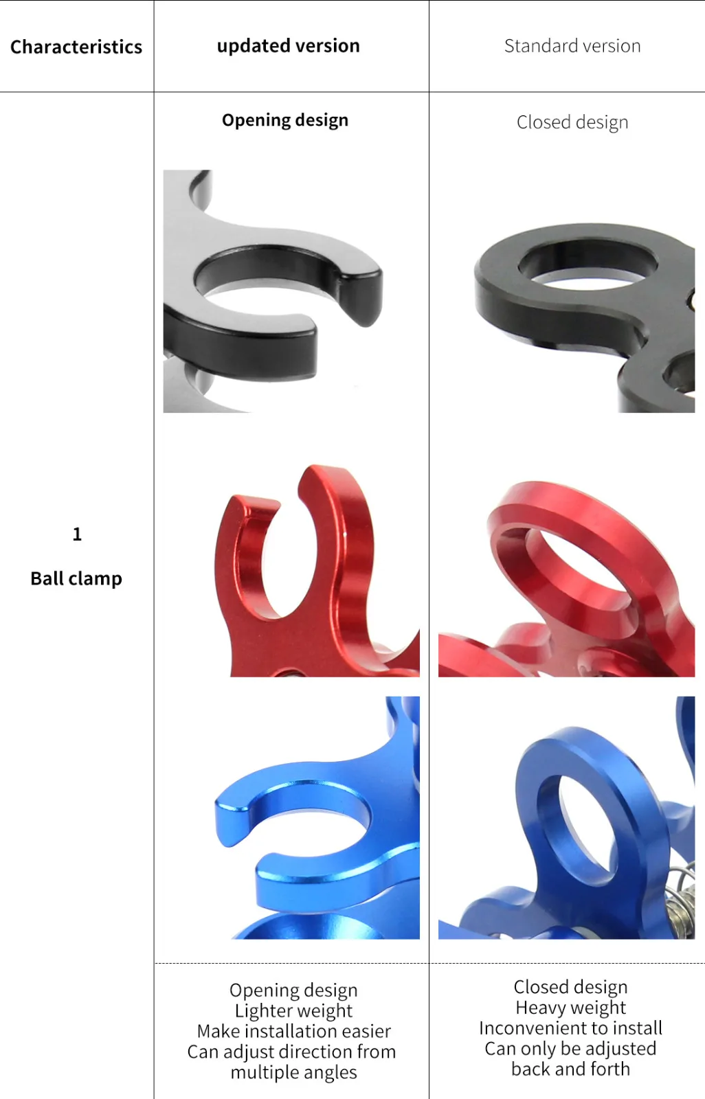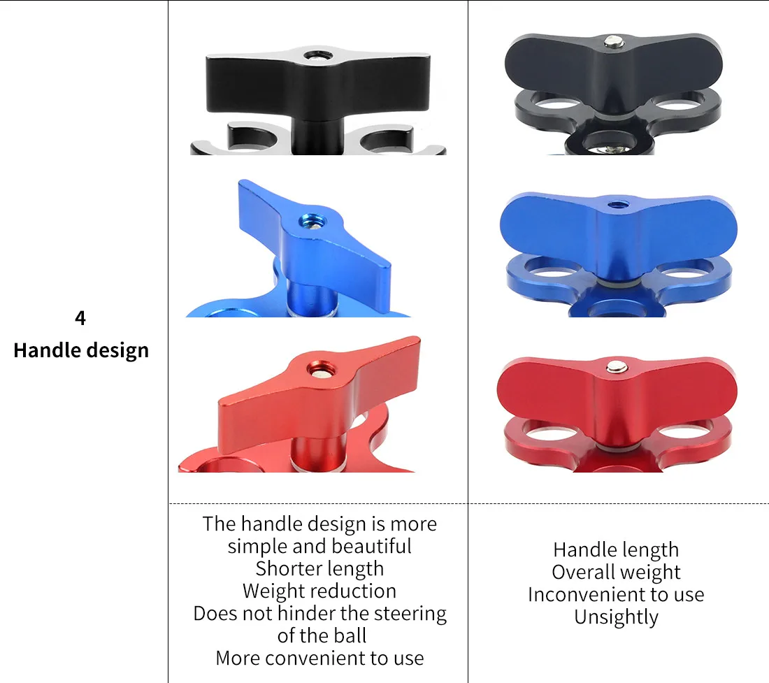 Versión uno: adaptador de montaje de bola de tornillo de aluminio de 1/4 pulgadas, los 3 colores negro/azul/rojo son opcionales
