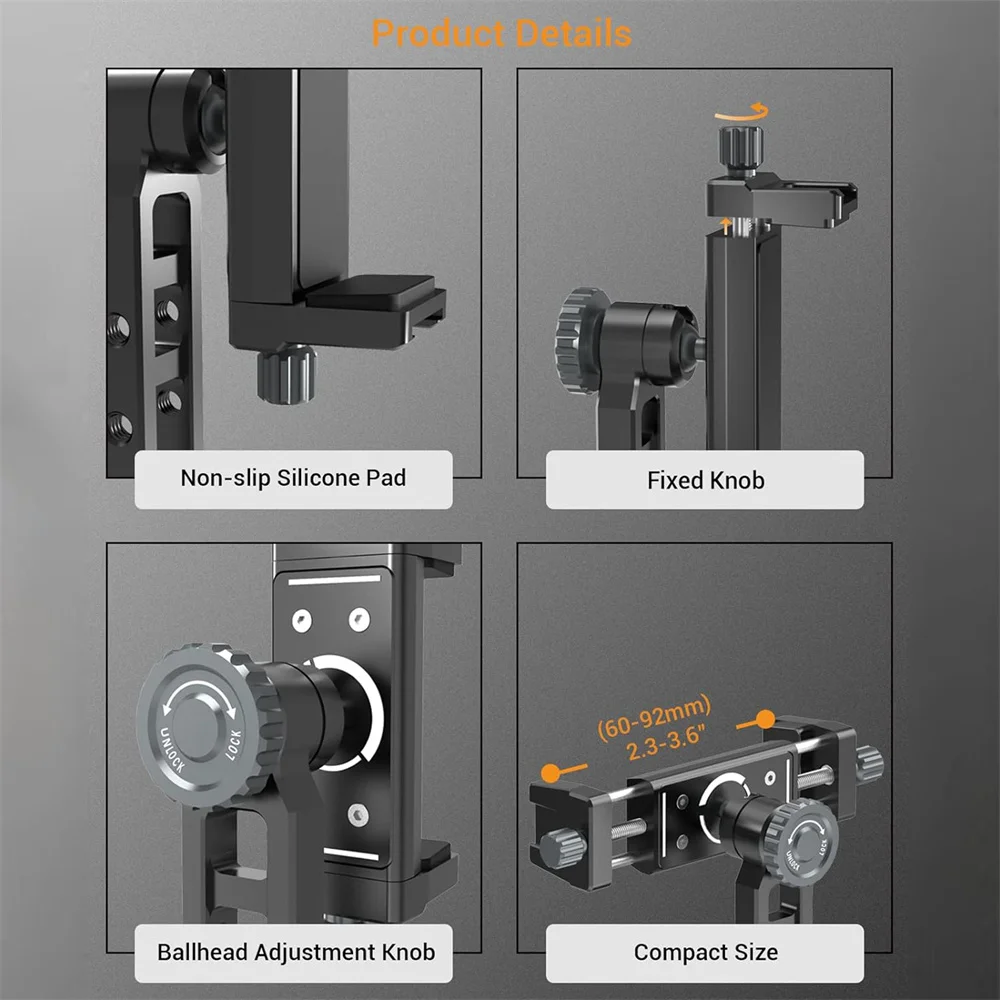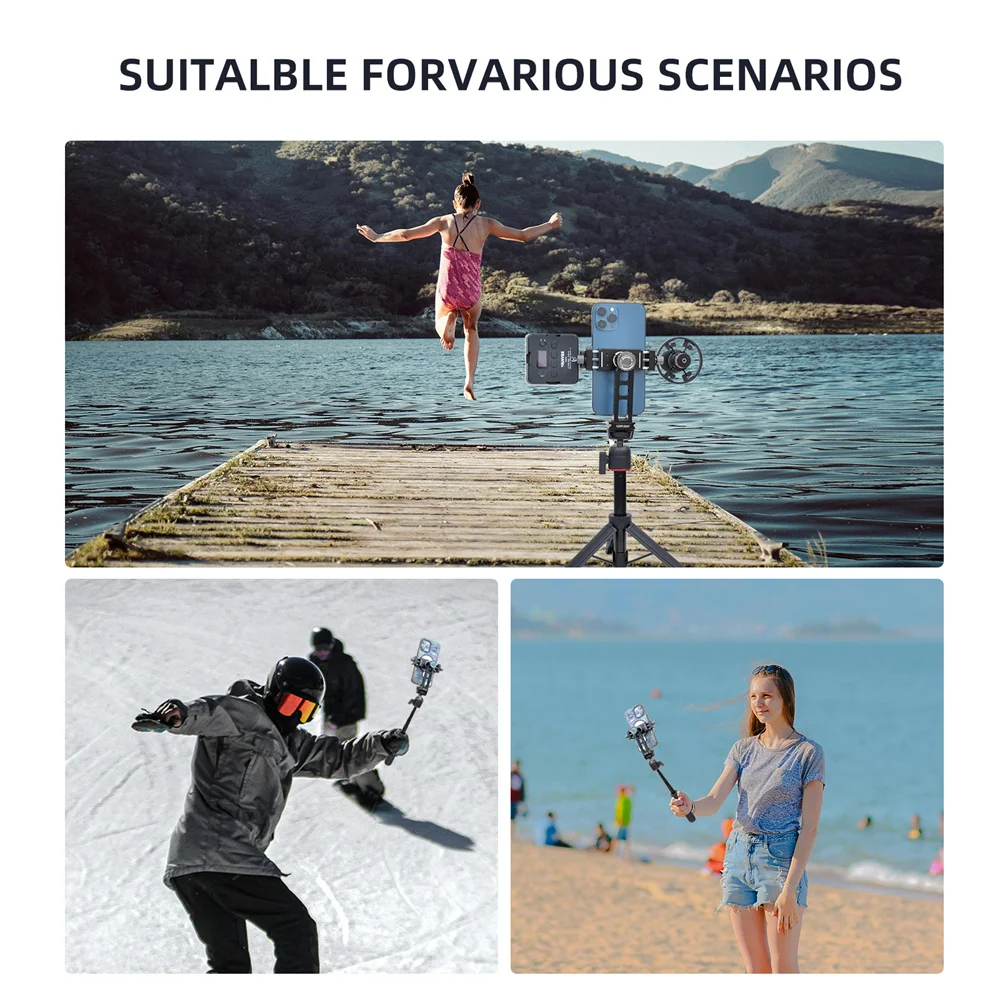 Capture todos los ángulos sin esfuerzo con el versátil 360 de nuestro soporte para trípode° Función de rotación, lo que garantiza que nunca te pierdas el tiro perfecto.
