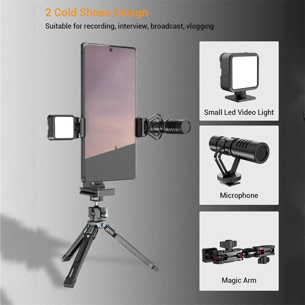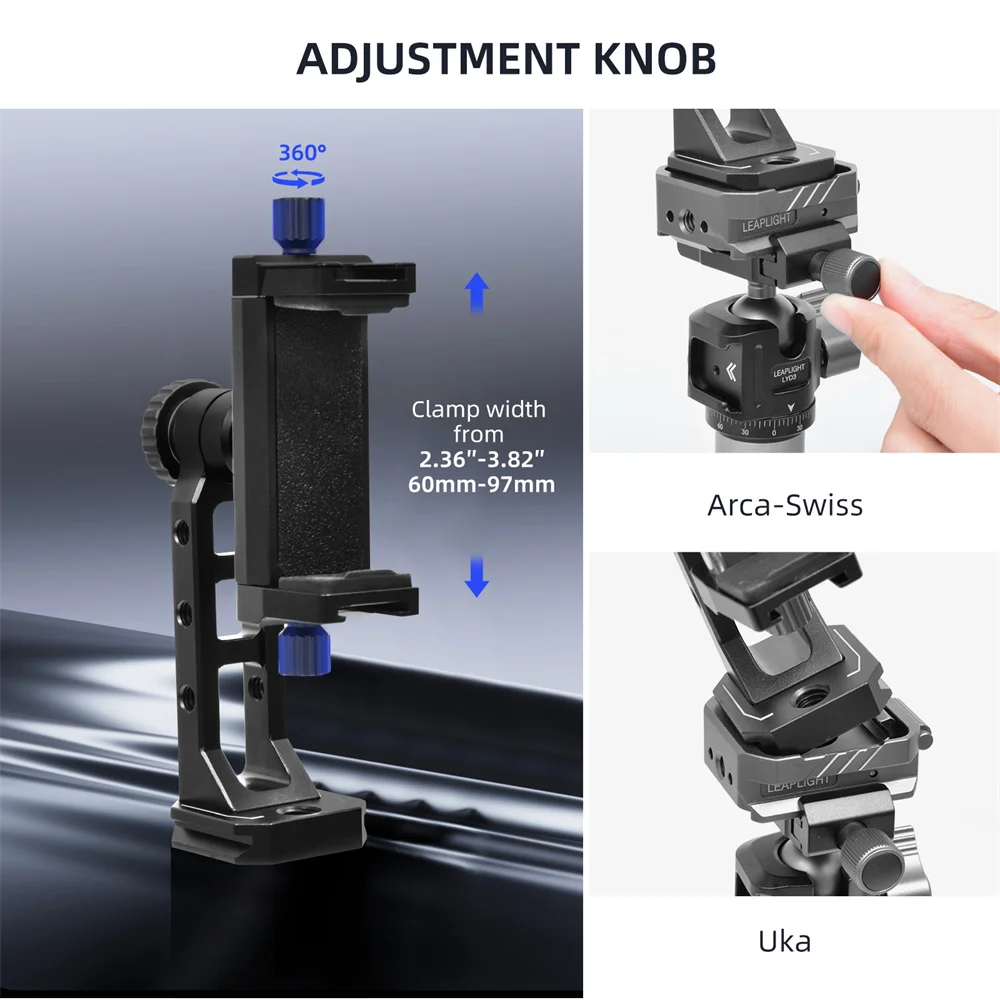 Mejore la fotografía de su teléfono con nuestro versátil 360° ¡Soporte de trípode de metal para teléfono!Con 2 zapatas frías y un puerto Arca, admite la rotación vertical y horizontal para obtener el ángulo perfecto.Con compatibilidad con varios modelos de teléfonos, continúe con cualquier aventura fotográfica con facilidad y precisión.