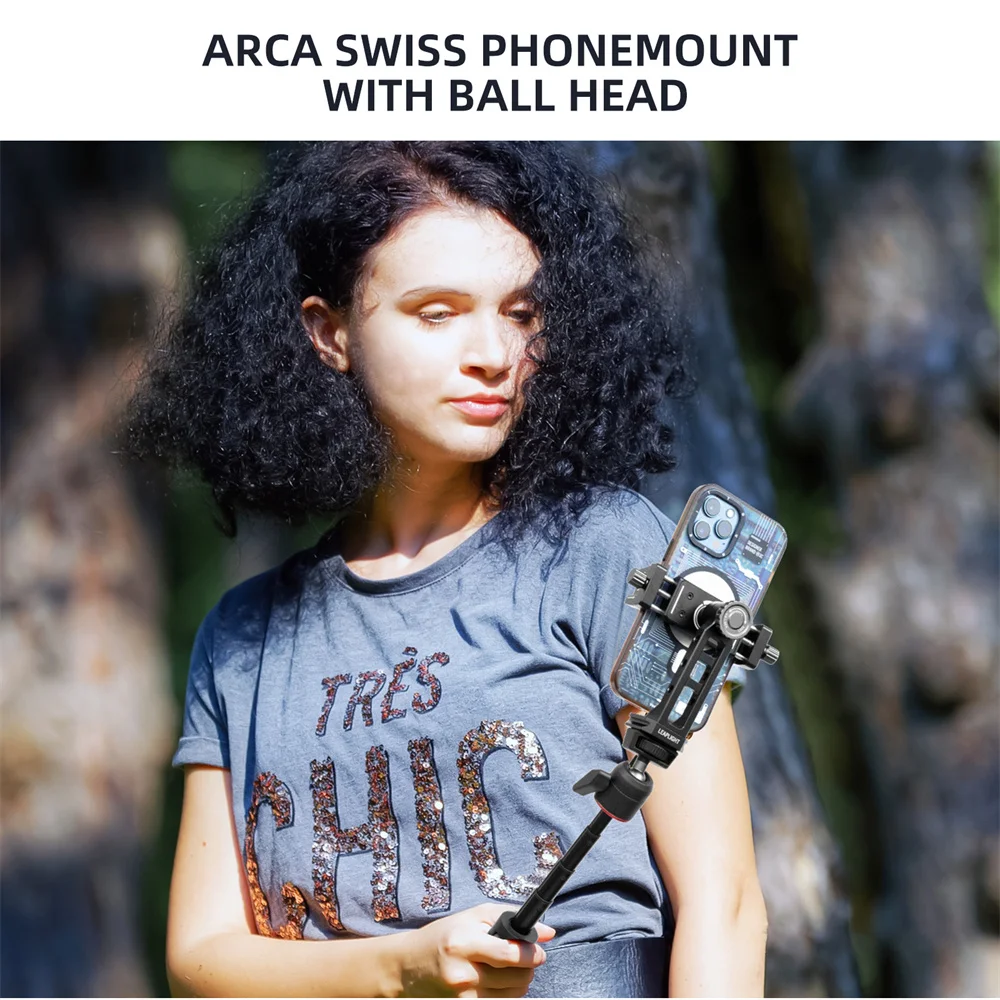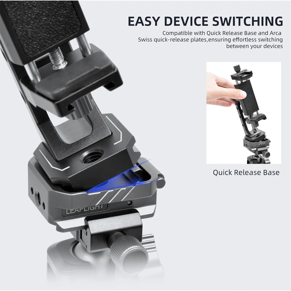 Cambie fácilmente entre dispositivos con el soporte compatible con Arca, proporcionando una conexión rápida y segura a su trípode