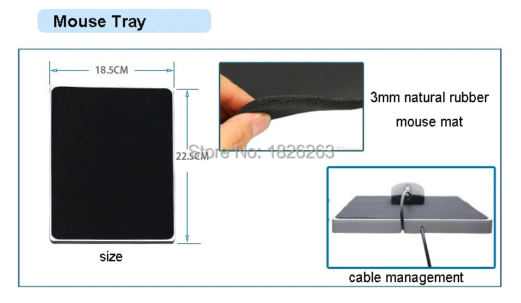 Alfombrilla de ratón con sujeción para brazo de Silla (con alfombrilla de ratón) Tamaño: 480mm (longitud), 230mm (ancho),12mm (grosor)
