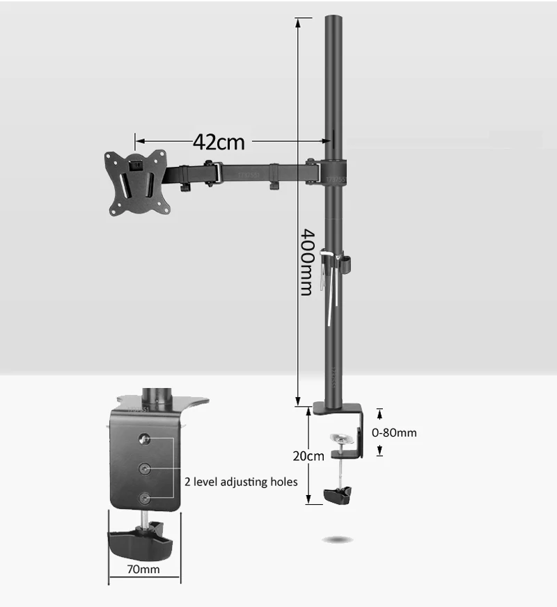 Instalación de abrazadera: adecuado para escritorio en 10-80mm de espesor