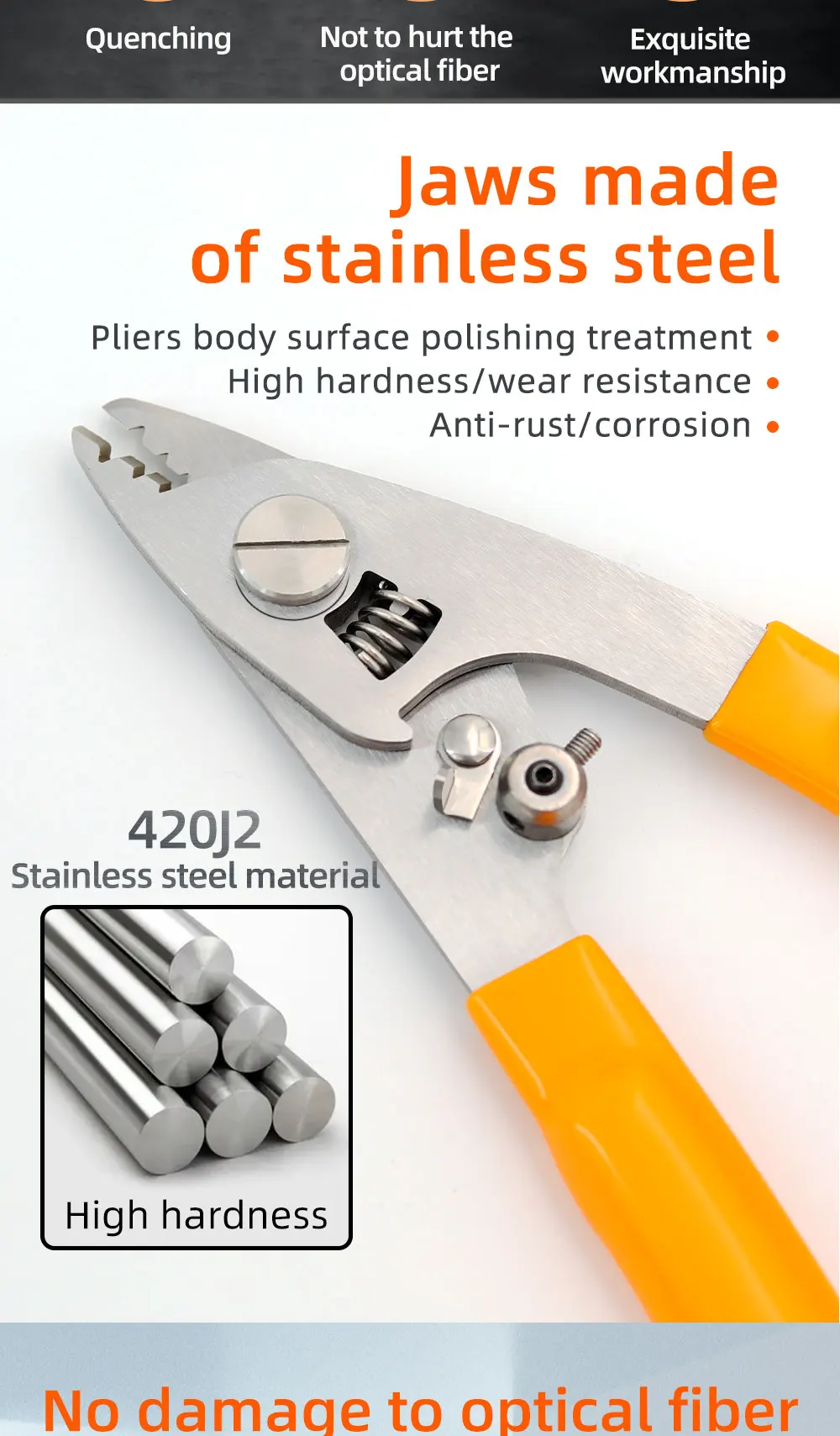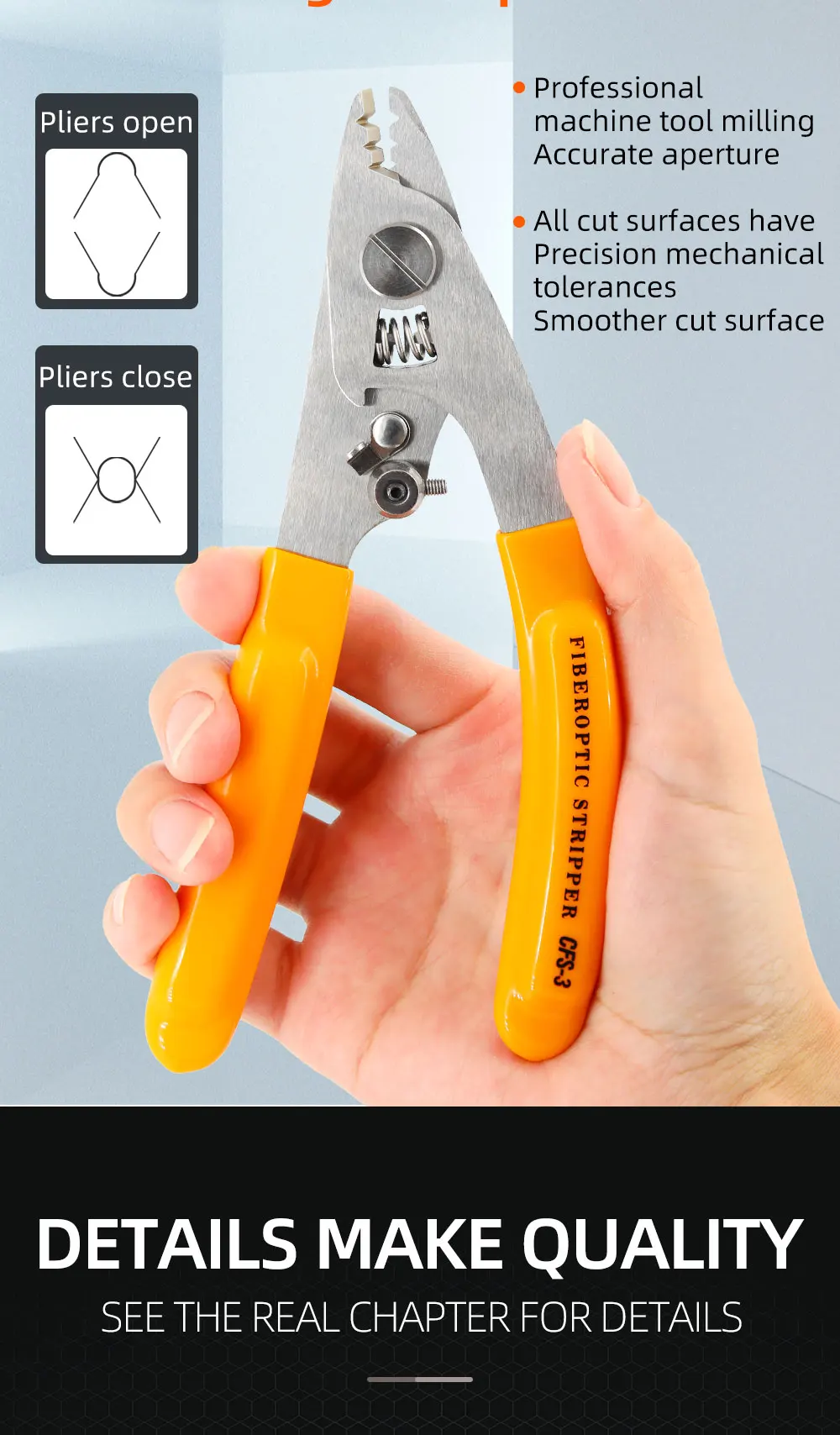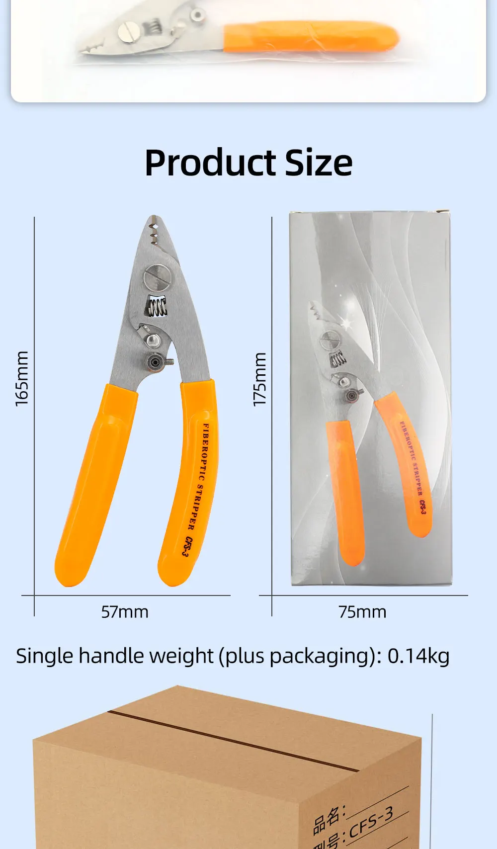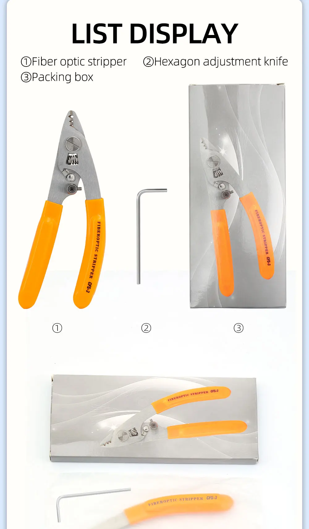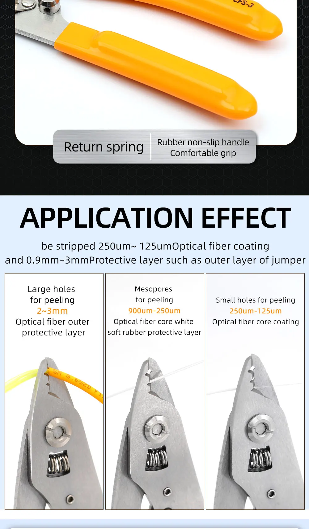 Abrazadera peladora de fibra de acero inoxidable naranja, alicates pelacables de fibra de tres puertos, herramienta peladora de revestimiento de fibra FTTH