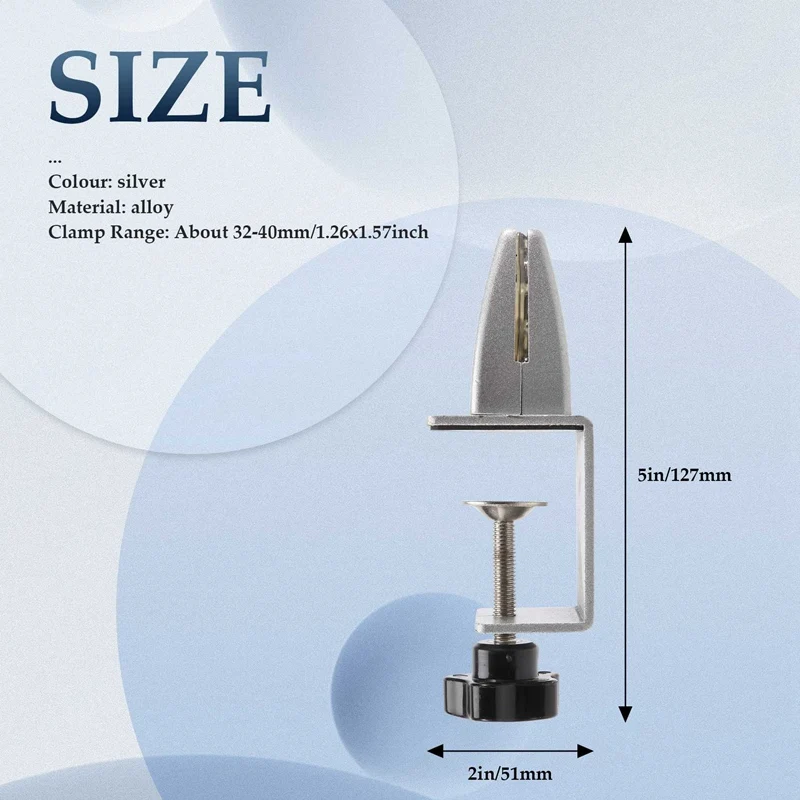 Tamaño de las abrazaderas: abrazadera superior de 1/8 pulgadas-3/8 pulgadas (vidrio, acrílico). Acrílico altura recomendada: 30 pulgadas o menos), abrazadera inferior de 1/2 pulgadas-2 pulgadas (ajuste cercano, mesa o escritorio).