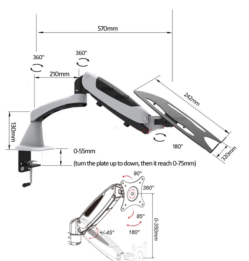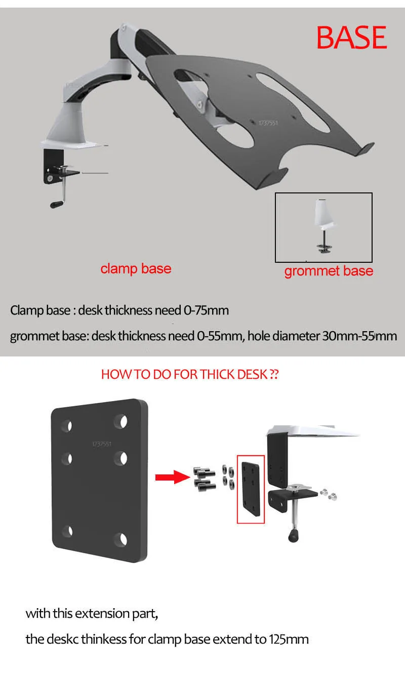 Instalación de abrazadera: espesor del escritorio dentro de 0-75 mm