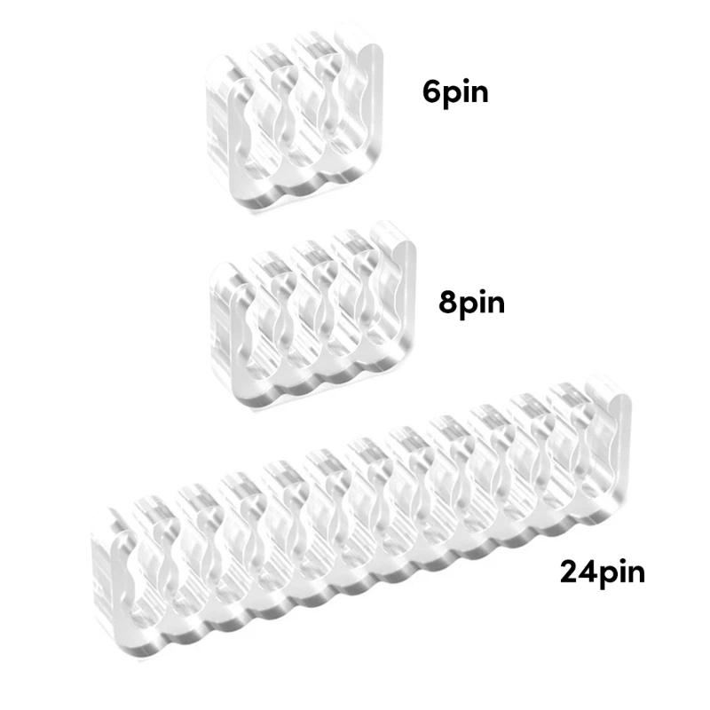 Tres tipos de clips de cable: Este producto viene con tres tipos de clips de cable, incluyendo clips de 6 orificios, 8 orificios y 24 orificios, adecuado para diferentes tipos de cables y para satisfacer sus diversas necesidades.