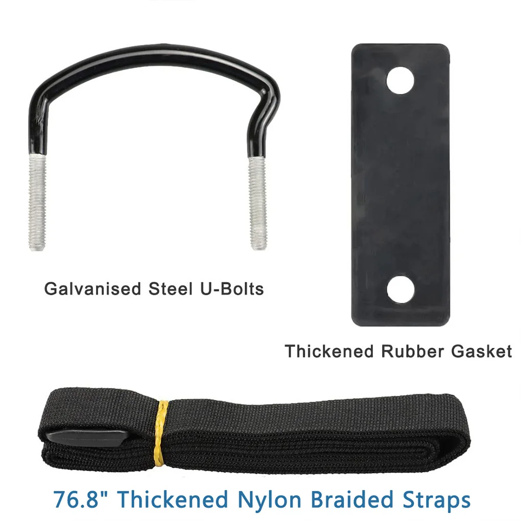 Duraderas y confiables: con 8 tuercas de bloqueo y 2 correas, estas abrazaderas para portaequipajes de techo están diseñadas para durar, brindando un soporte confiable y duradero.