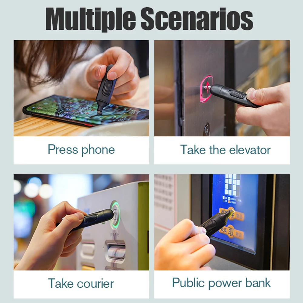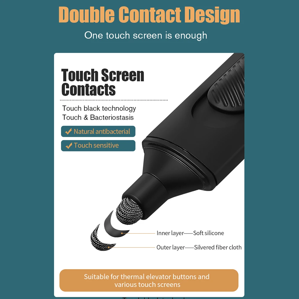 El punto de venta definitivo del producto: Este producto utiliza plata metálica como material de contacto. La plata tiene una alta eficiencia y una capacidad antibacteriana de amplio espectro, lo que puede inhibir rápidamente los virus o bacterias que se pegan a los contactos plateados y garantizar la limpieza del producto en sí. La punta del bolígrafo retráctil está libre de contacto, anticontaminación y evita eficazmente el contacto con la propagación del virus. Adecuado para diversos entornos.