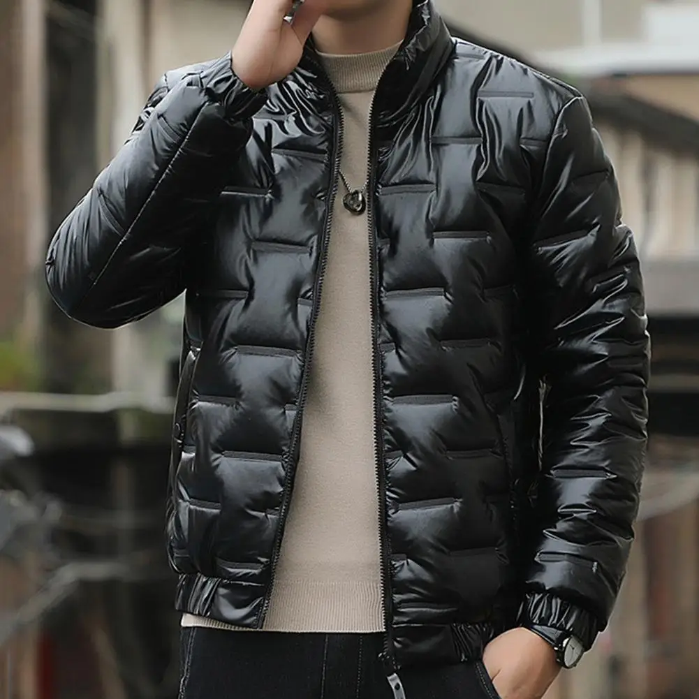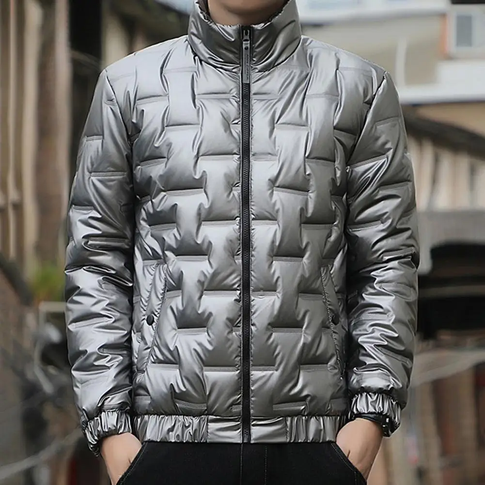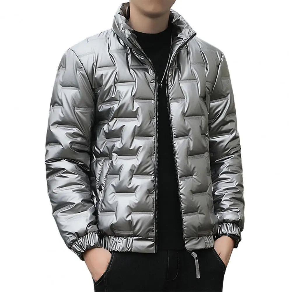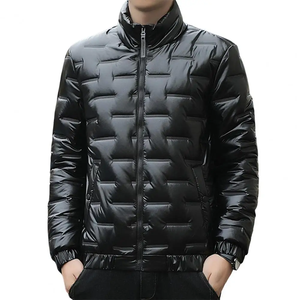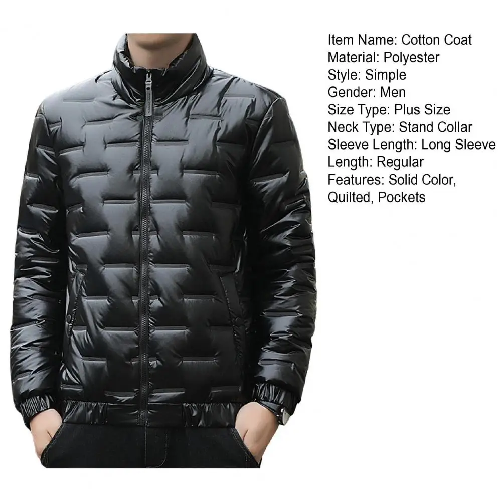 Abrigo de algodón a prueba de viento, chaqueta acolchada de invierno para hombre con cuello levantado, tapeta con cremallera, prendas de vestir acolchadas a prueba de viento para el frío