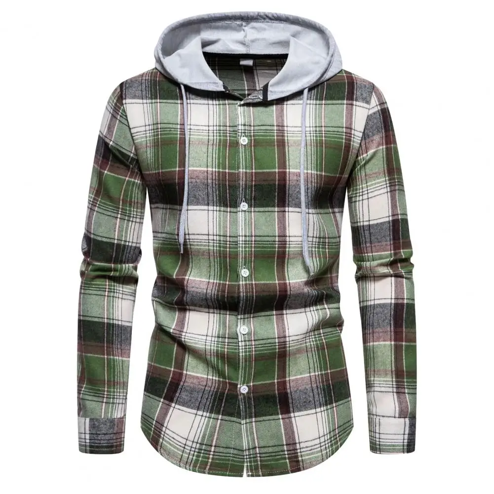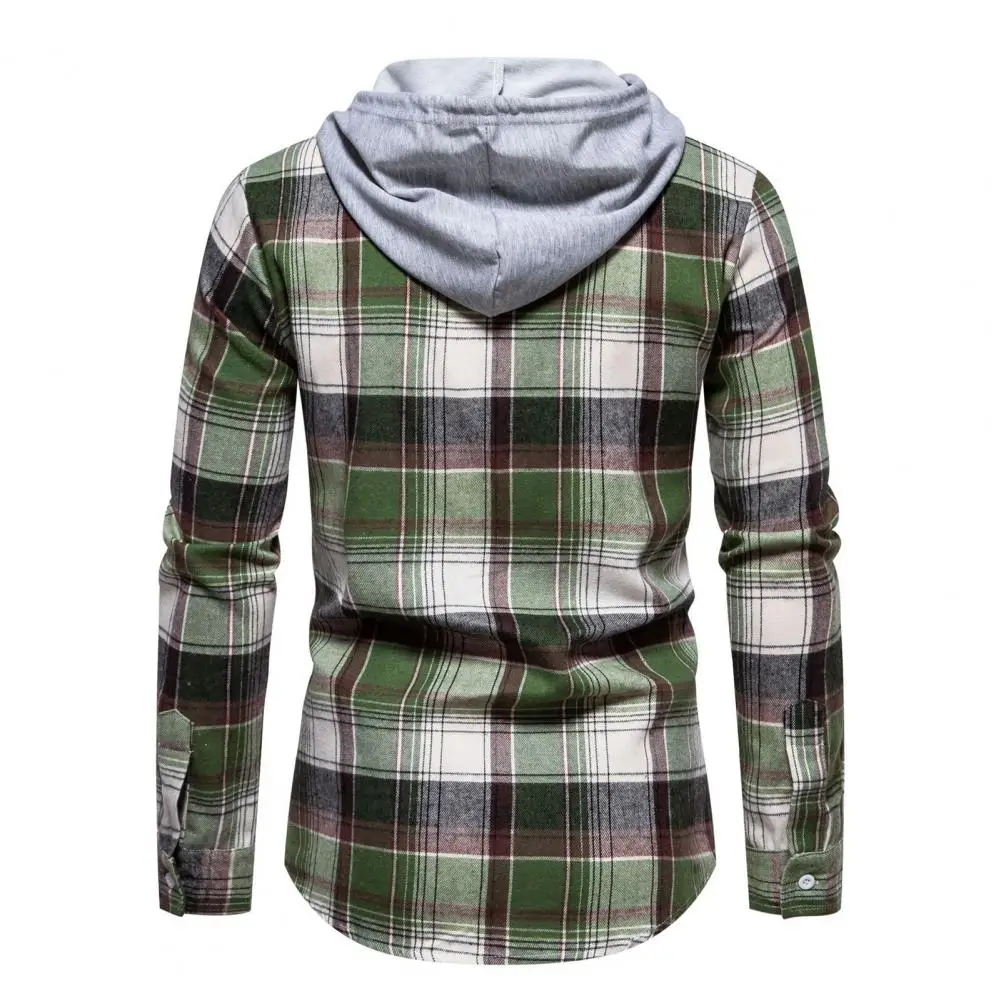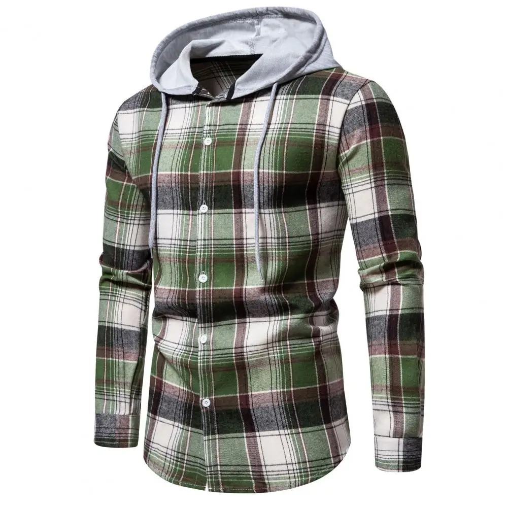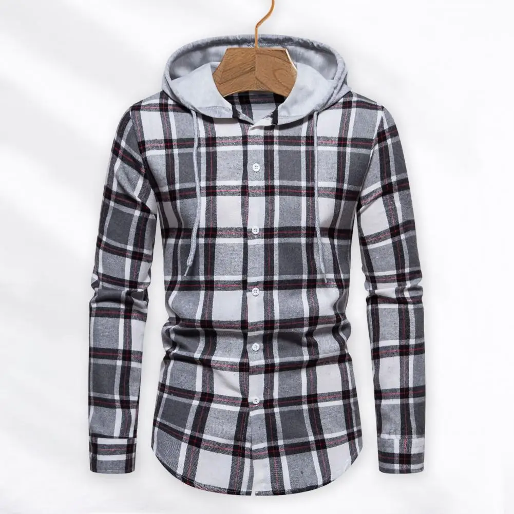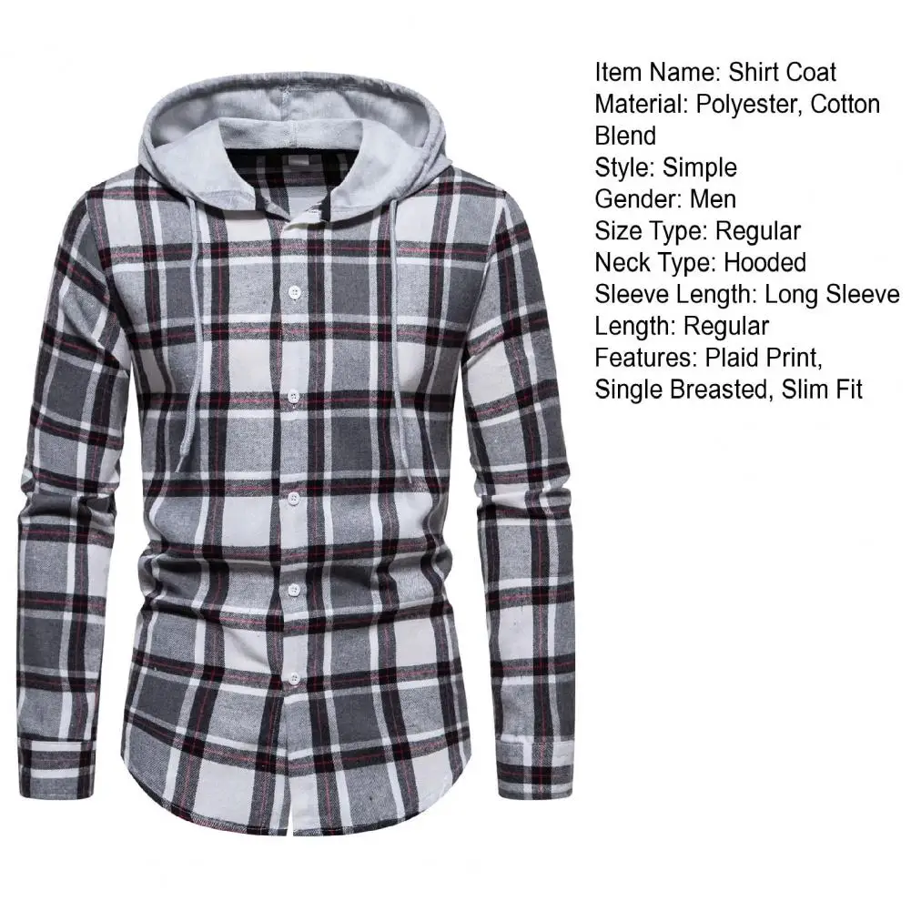 Abrigo CON CAPUCHA DE Color de retales para hombre, camisa con estampado a cuadros y capucha para primavera y otoño, abrigo con diseño de un solo pecho, ajustado para ropa de calle