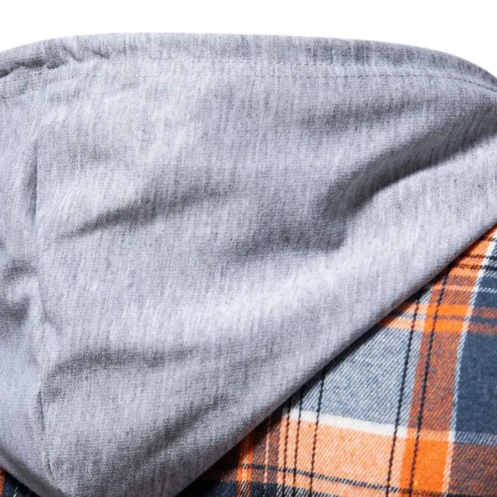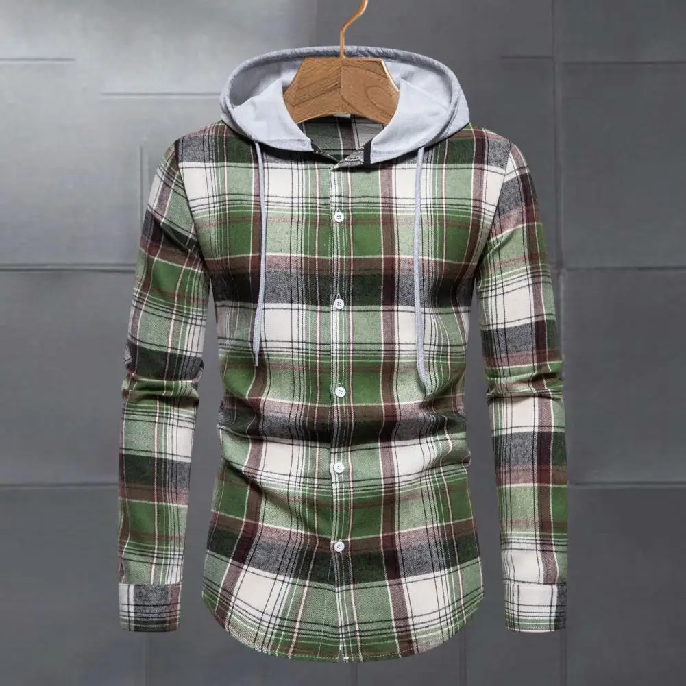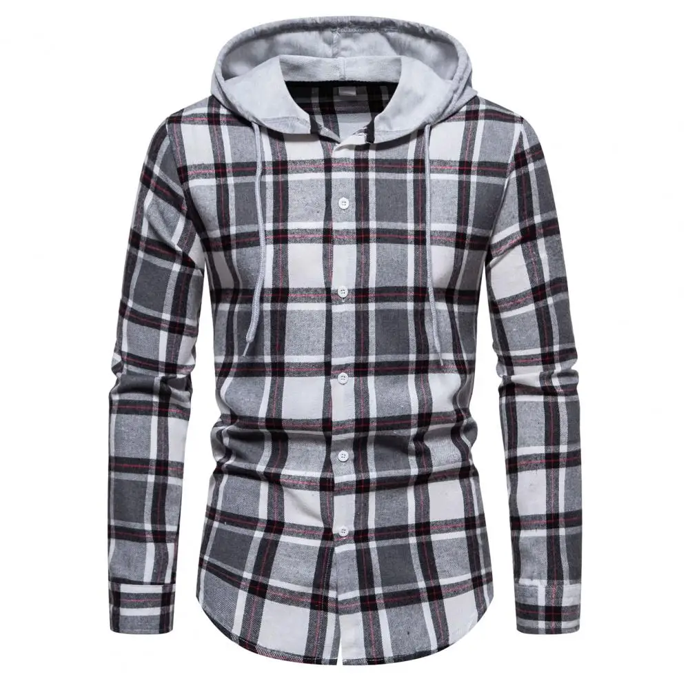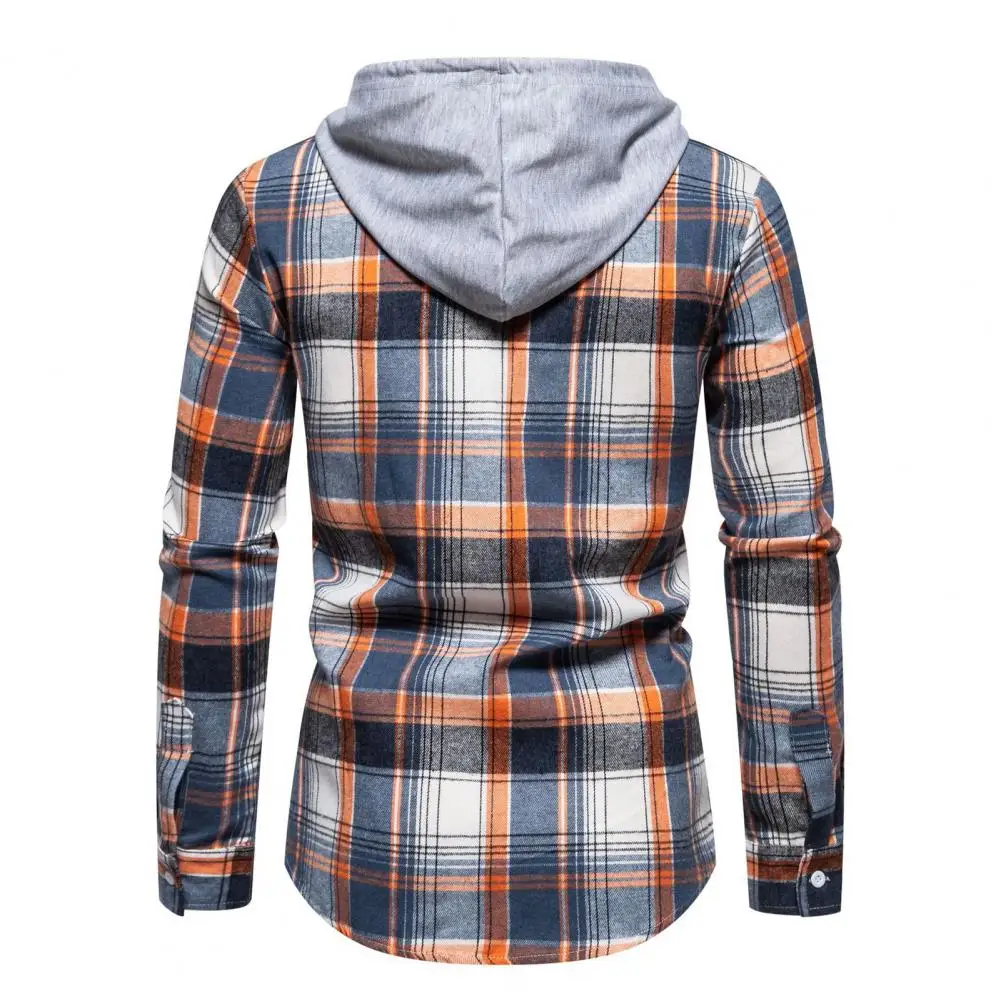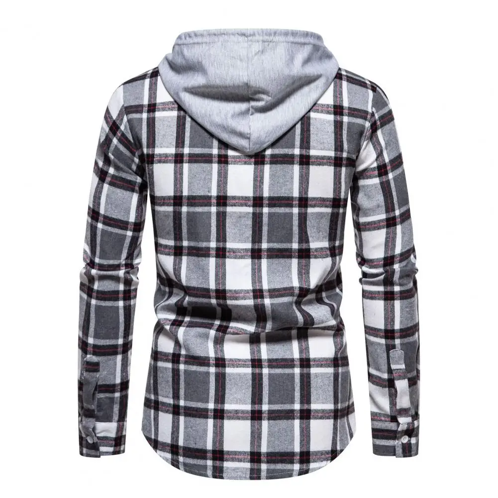 Abrigo CON CAPUCHA DE Color de retales para hombre, camisa con estampado a cuadros y capucha para primavera y otoño, abrigo con diseño de un solo pecho, ajustado para ropa de calle