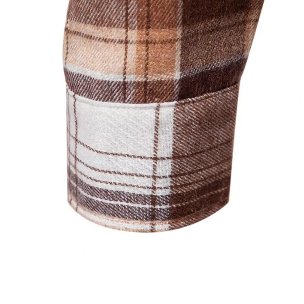 Abrigo camisero elegante y versátil con alta saturación de color y atractivo patrón de cuadros.