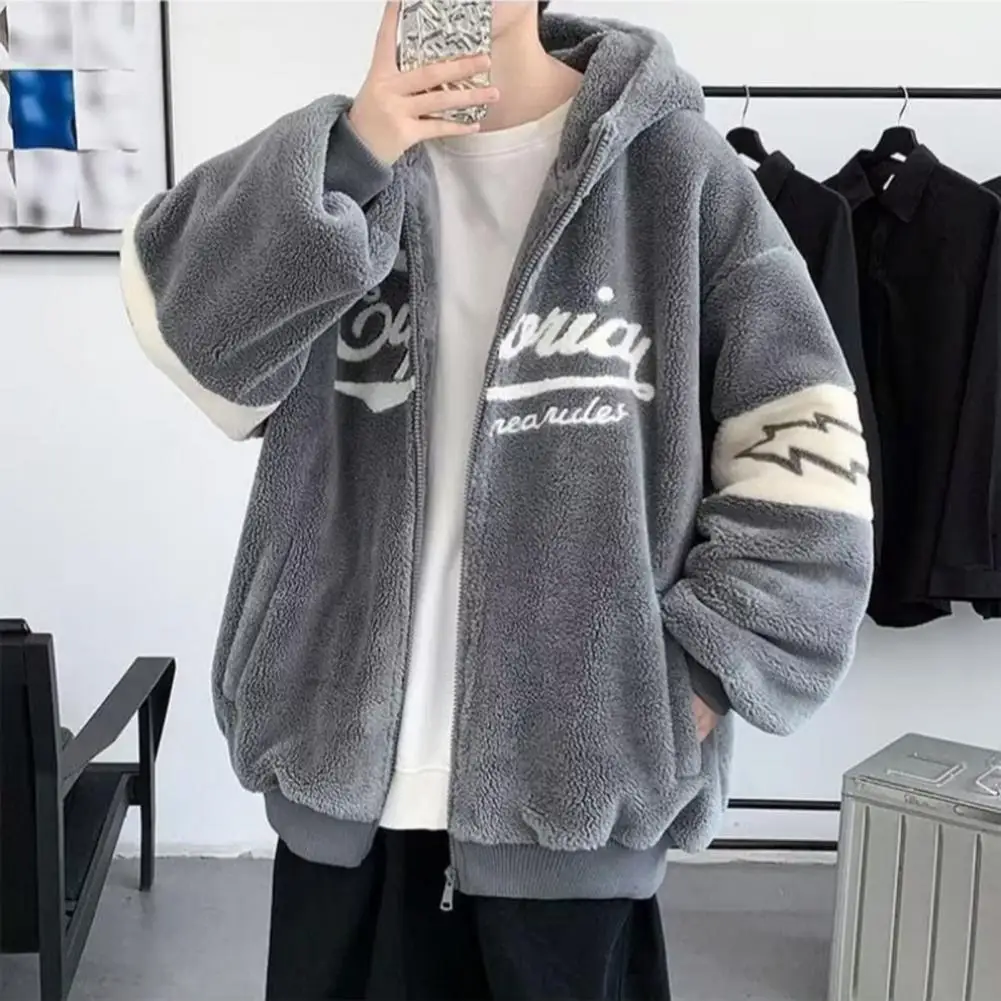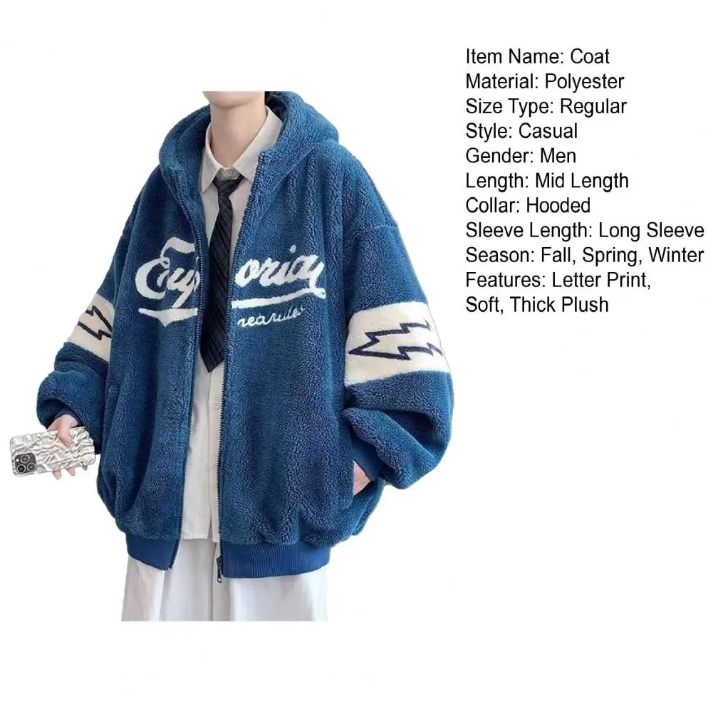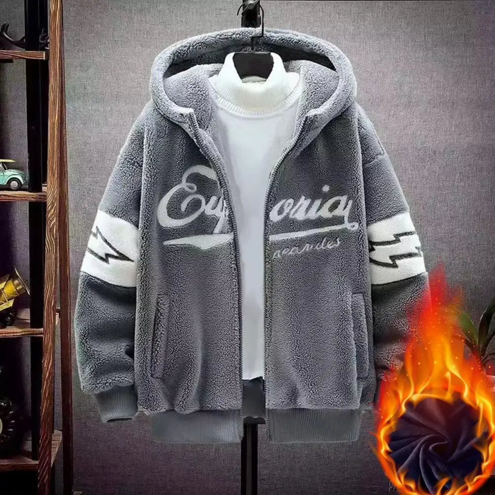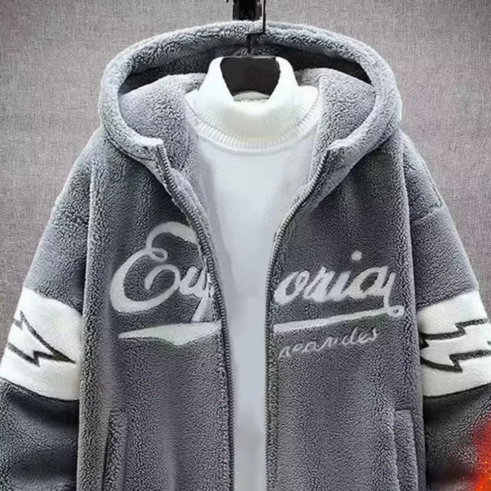 Abrigo térmico con capucha para hombre, elegante abrigo de invierno para hombre, cárdigan cálido con capucha y estampado de letras, tela gruesa, múltiples bolsillos para el frío