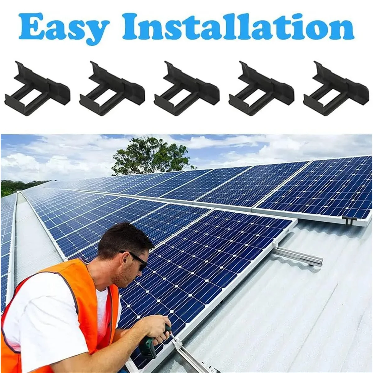 Clips para paneles solares Instalación simple, guía el agua de lluvia y el barro, prolonga la vida útil y resuelve fácilmente el problema de la acumulación de agua de lluvia y la acumulación de cenizas en los paneles solares. Tamaño: 40 mm Material: ABS Color: Negro Contenido del paquete: 50 x Clips de drenaje de agua de lluvia Solo el contenido del paquete anterior, otros productos no están incluidos. Nota: Los reflejos de la luz y las diferentes pantallas pueden hacer que el color del elemento en la imagen sea un poco diferente al real. El error de medición permitido es +/- 1-3 cm.