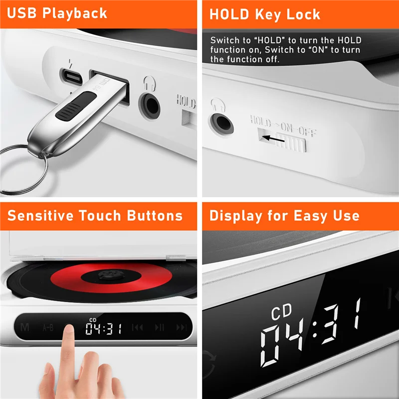 Comprar ABWG-reproductor de CD portátil con Altavoz Bluetooth, pantalla LED, reproductor estéreo, reproductor de música CD montable en la pared con FM