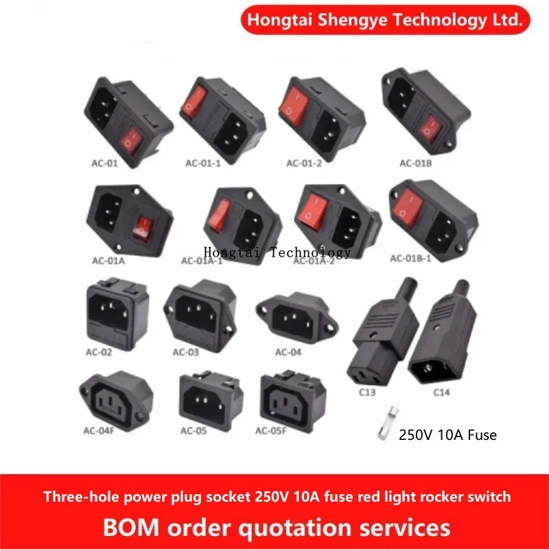 AC-01/AC-02/AC-03/AC-04/AC-05/AC-04F/AC-05F/C13/C14 enchufe y enchufe de alimentación de 3 pines 250V 10A fusible luz roja interruptor basculante para barco