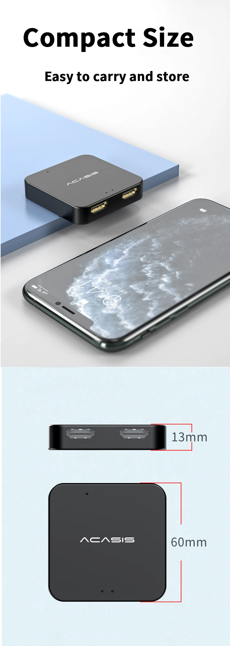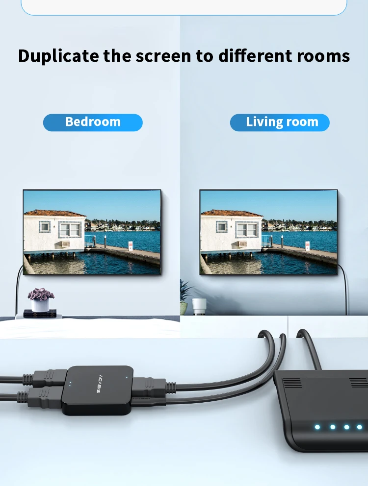 ✔Divisor HDMI 1 en 2 out-el divisor HDMI de aluminio Techole distribuye la señal de audio y video de una sola fuente a dos pantallas HDMI simultáneamente, y crea impresionantes presentaciones de alta definición. Sin retraso, sin flash ni caída en la resolución.✅Asegúrate de que la resolución de ambos dispositivos de salida sea la misma para garantizar un funcionamiento normal.