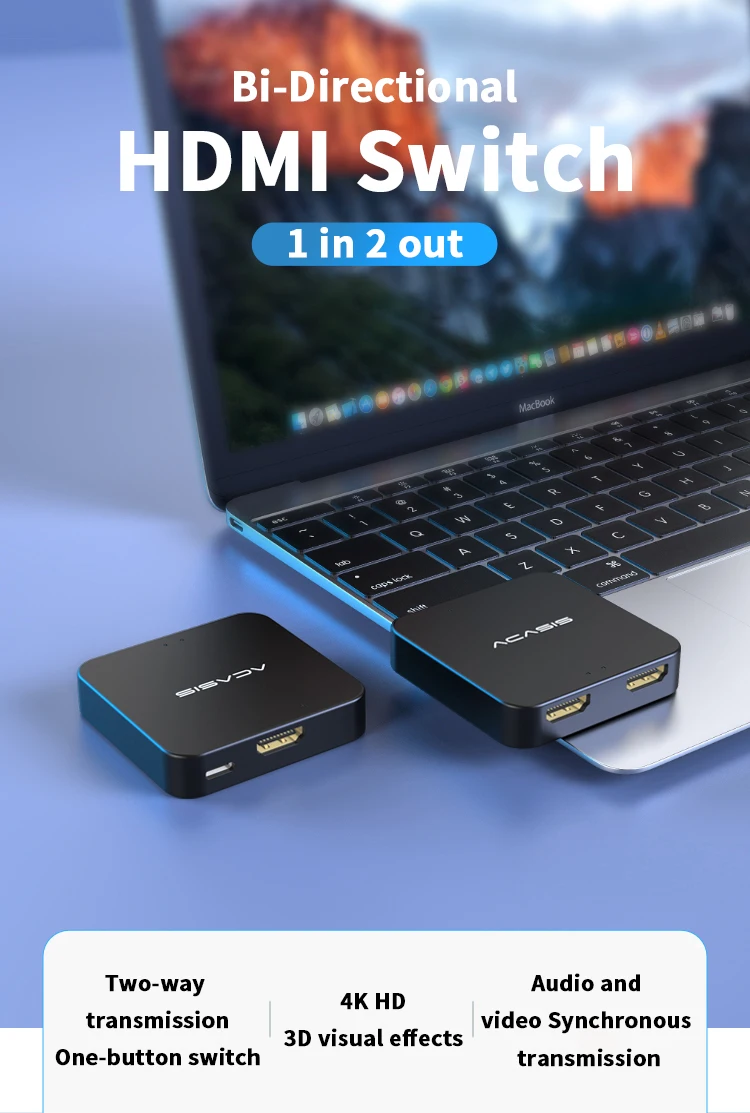 Comprar Acasis-Cable divisor compatible con 4K, 1x2, 1 entrada, 2 salidas, HD 1080P, conmutador de vídeo, adaptador, concentrador de puerto para DVD, HDTV, PC, TV, portátil