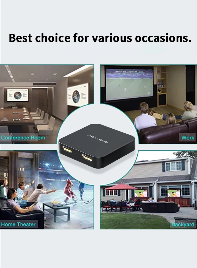 ✔Funcionamiento sencillo de Plug and Play: este divisor HDMI es fácil de configurar y operar. Solo tienes que conectar tus dispositivos HDMI y el cable del cargador USB (✅No viene con adaptador) para disfrutar. Es ideal para exposiciones comerciales, salas de conferencias, salas de cama, salas de estar, cocinas y patio trasero.