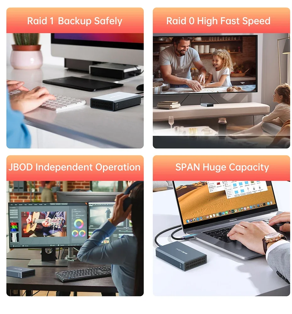 Caja HDD de doble bahía tipo C de 2,5" con 4 RAID