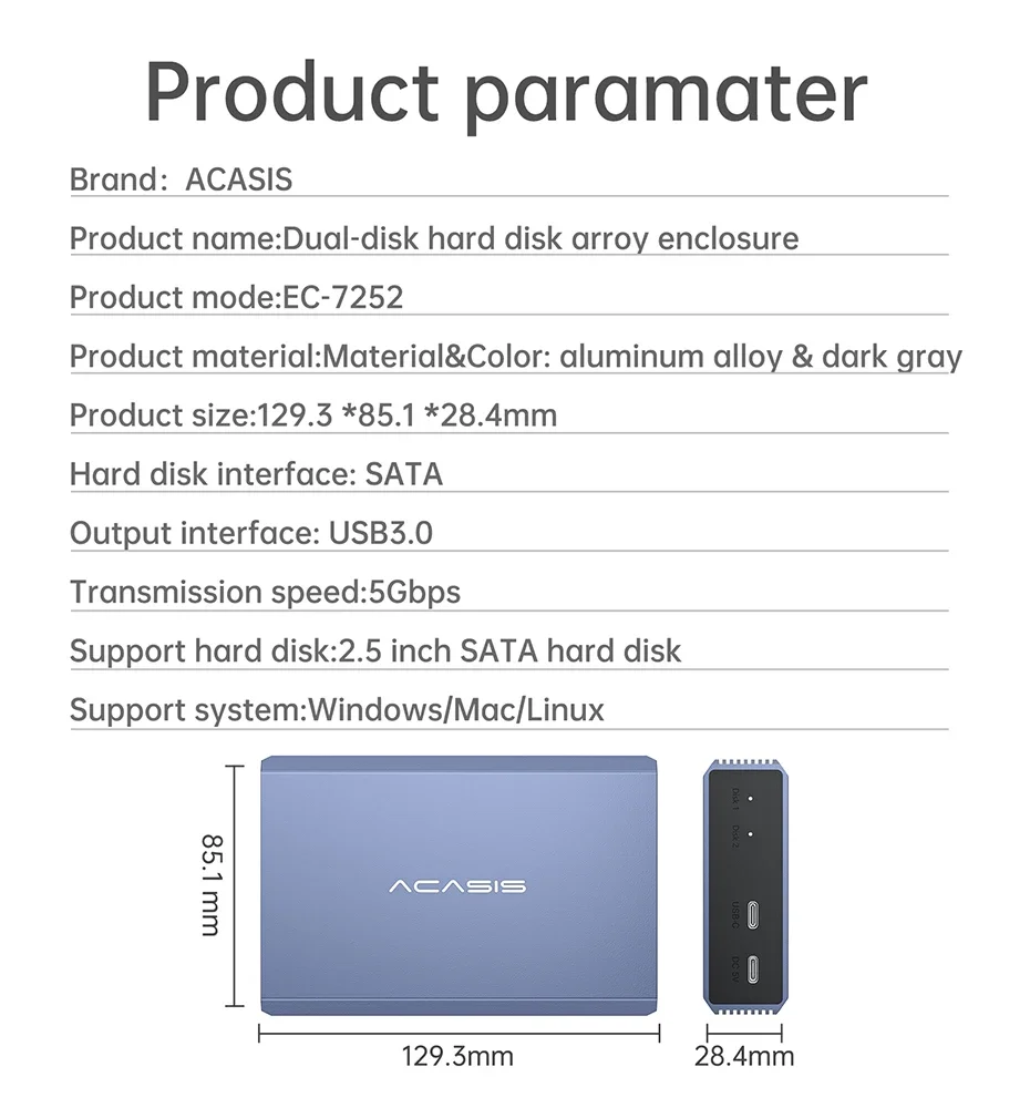 Comprar Acasis-carcasa para disco duro externo de 2,5 pulgadas, carcasa para HDD, SSD, RAID Array tipo C, 2,5"