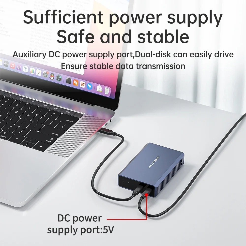 Caja HDD de doble bahía tipo C de 2,5" con 4 RAID