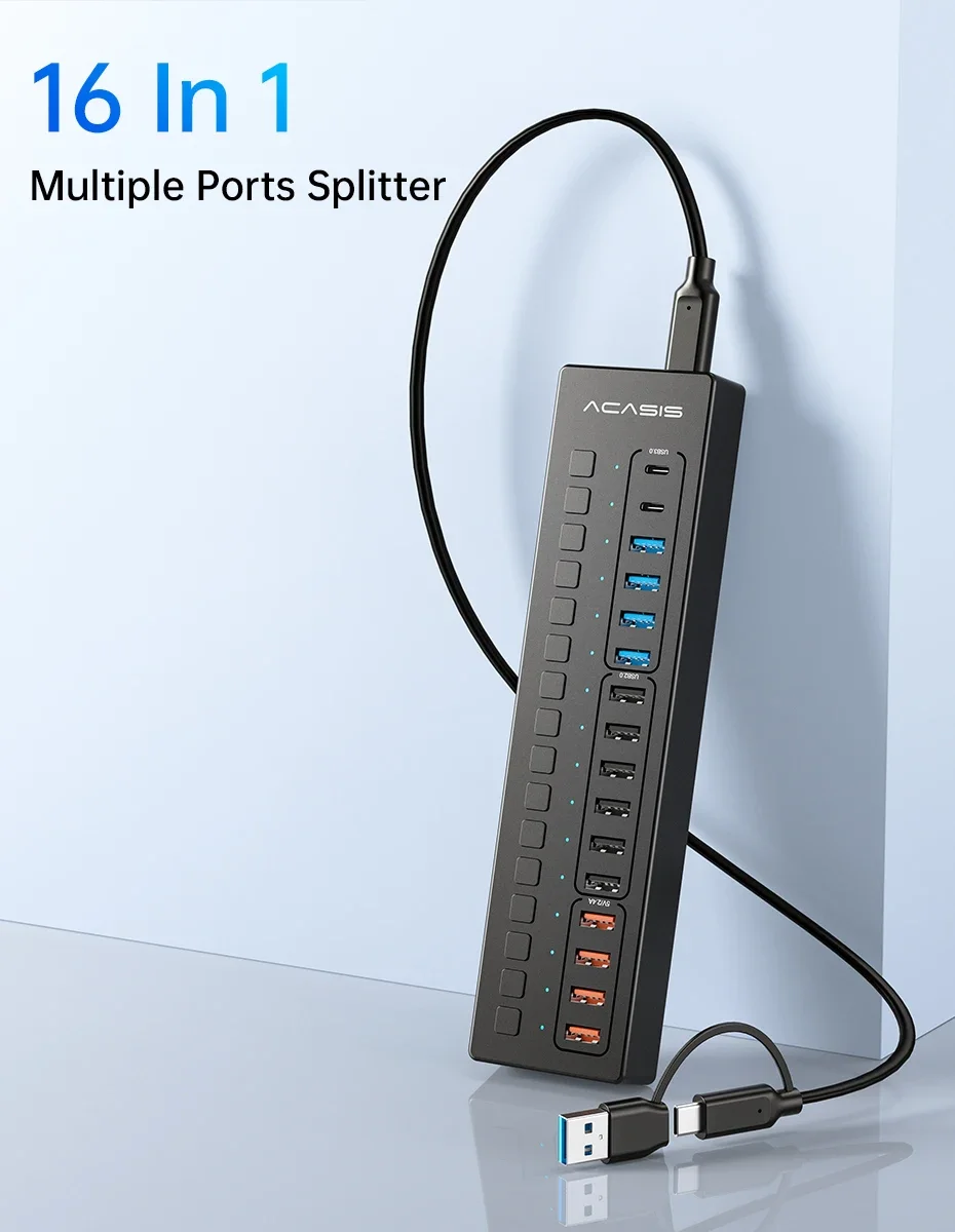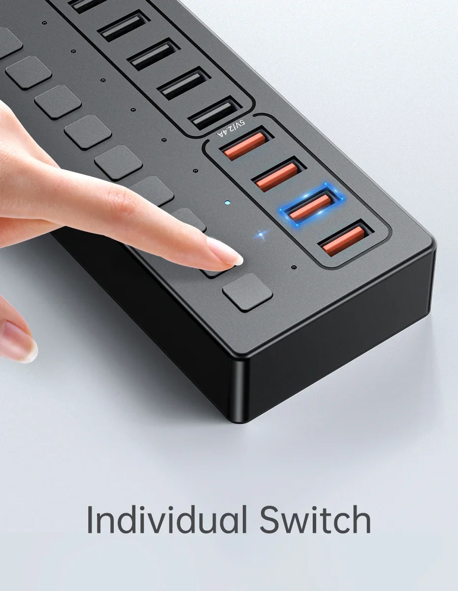 Los cuatro puertos naranjas son solo para cargar, no para transferencia de datos.