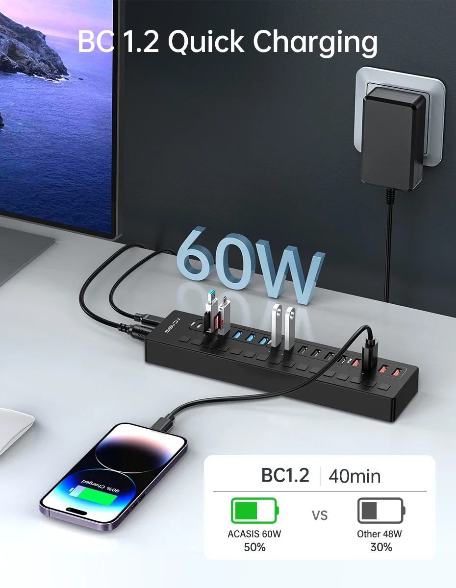 Los conectores naranjas no se cargan rápidamente, son carga común. Lo más importante es que he aumentado los puertos USB de mi PC.