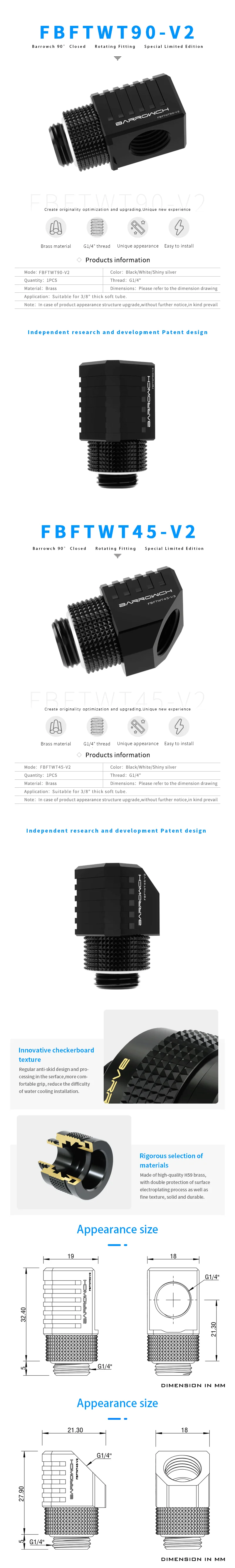 Accesorio adaptador giratorio Barrowch de 4 piezas, versión limitada para accesorios en ángulo de tubo de refrigeración por agua, 45 ° 90 °