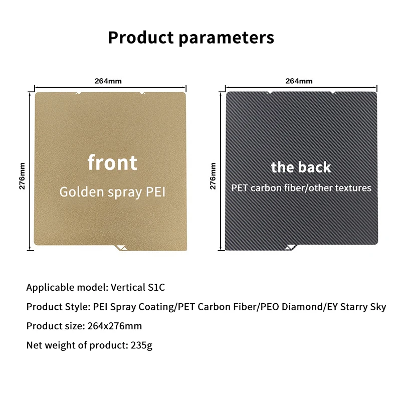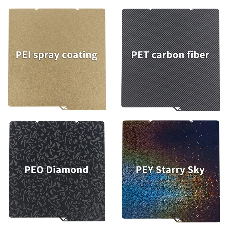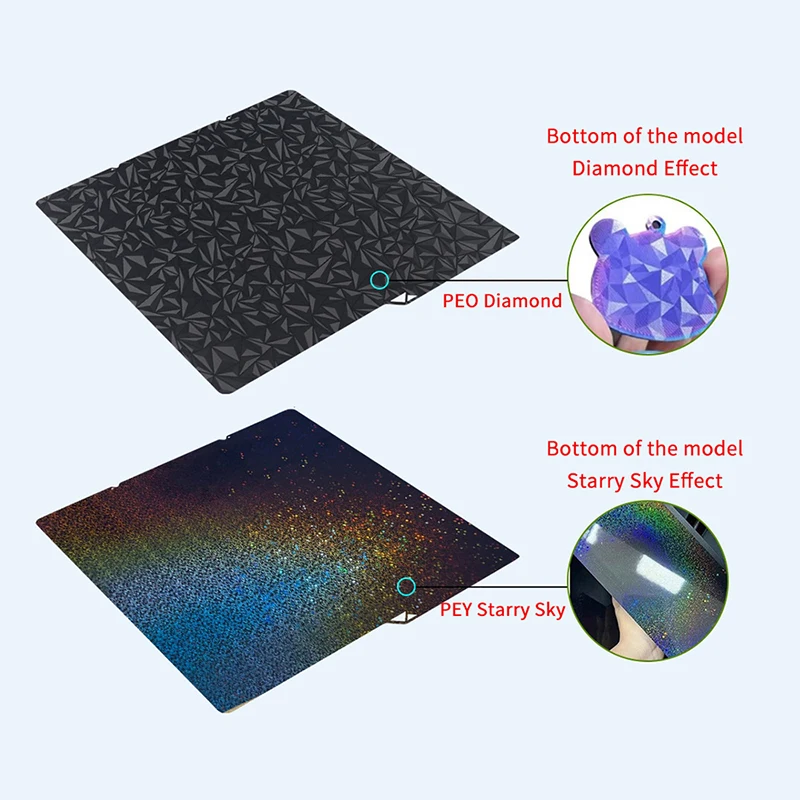 2.Superficie de textura PEI: el uso del diseño de material PEI no solo tiene una excelente resistencia a altas temperaturas, sino que también tiene una buena textura, lo que hace que la impresión sea más fácil de adherir y mayor suavidad.