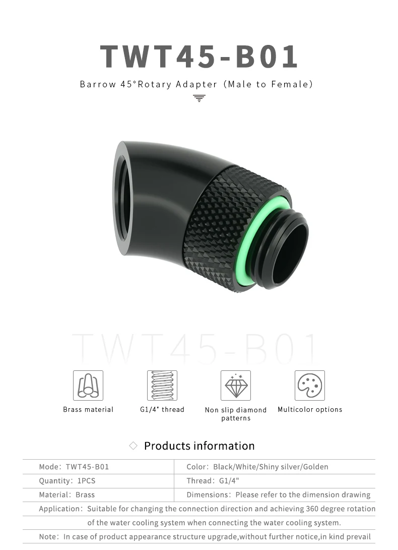 Accesorio en ángulo para carretilla G1/4'' 45/90 grados M-F giratorio 360 ° Adaptador giratorio PC refrigeración por agua codo conectar dirección 4 colores