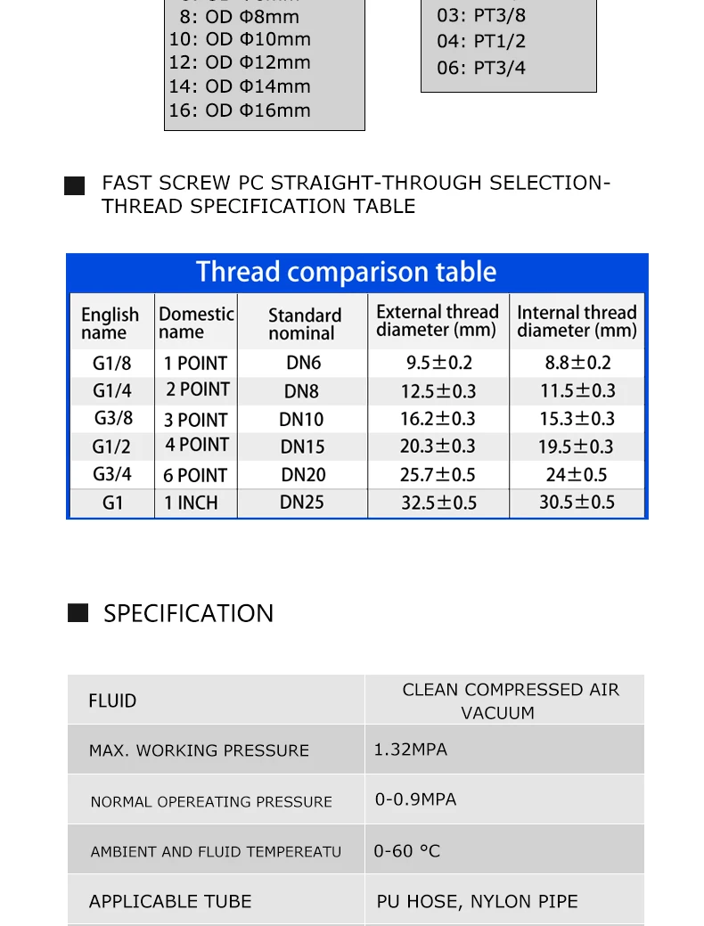 Preste atención al tamaño de la rosca externa, el diámetro interior y el diámetro exterior de la manguera conectada.