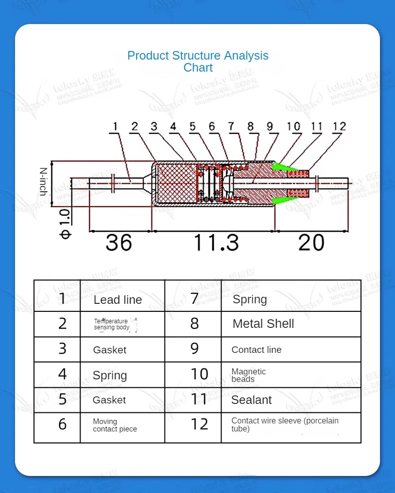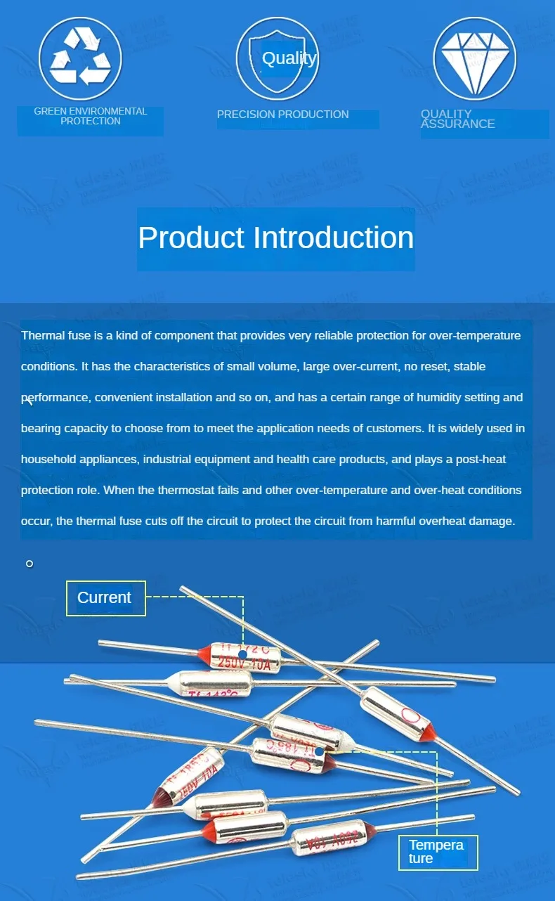 Accesorio de tubo de fusible de temperatura para olla arrocera, 5 piezas, fusible térmico TF RY 10A 250V, temperatura 72C 85C 95C 110C 115C 121C 130C 185C