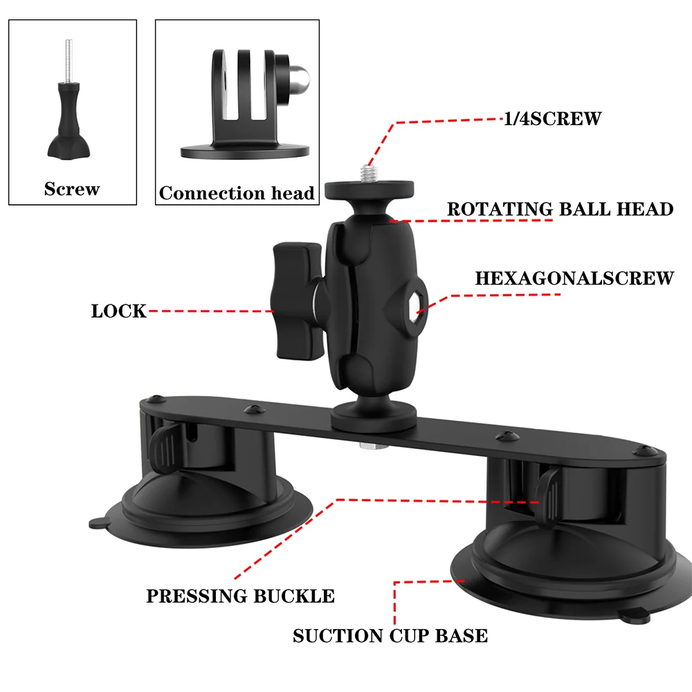 Comprar Accesorios de cámara de Video deportiva, Kit de cámara de acción, juego de montaje de soporte de ventosa de doble cabezal para GoPro Insta360 DJI OSMO