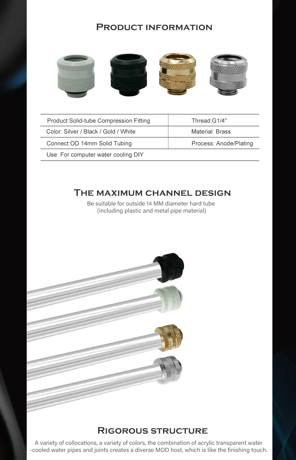 Accesorios de compresión de tubo duro anticaída G1/4 ''para tubería esmerilada PETG acrílica OD14mm, adaptador de conector de refrigeración por agua para PC
