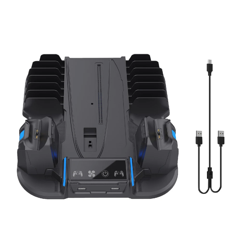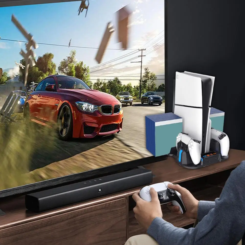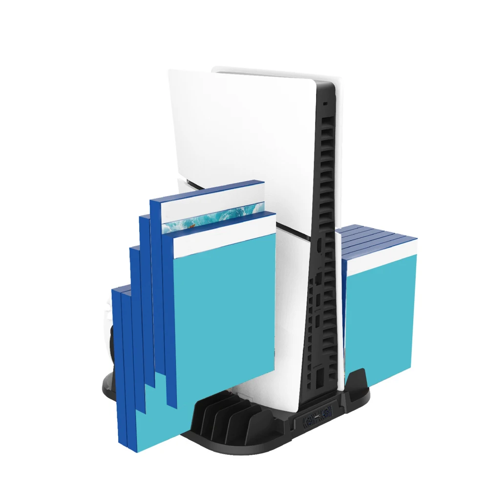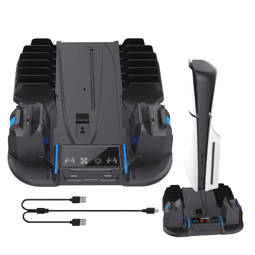 Comprar Accesorios para consola de juegos, soporte de refrigeración con cargador de 2 mandos, 12 discos de juego, estante de almacenamiento Compatible con consola PS5 Slim